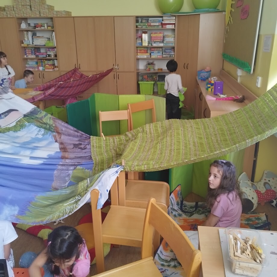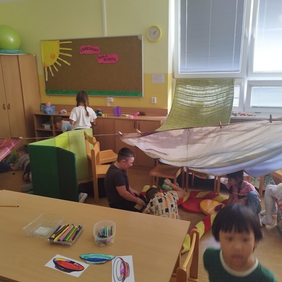 Nejdříve jsme v prostorách školní družiny hráli seznamovací a společenské hry, ve druhé fázi jsme společně prozkoumávali její vybavení, seznamovali se se stavebnicemi, celkovým prostorem a jeho možnostmi.