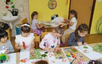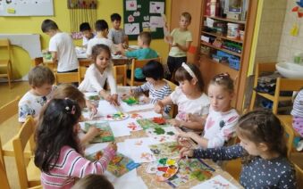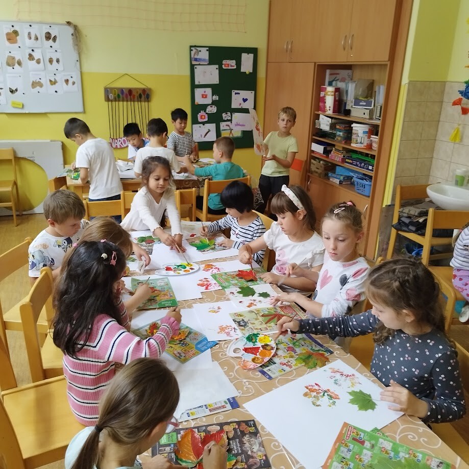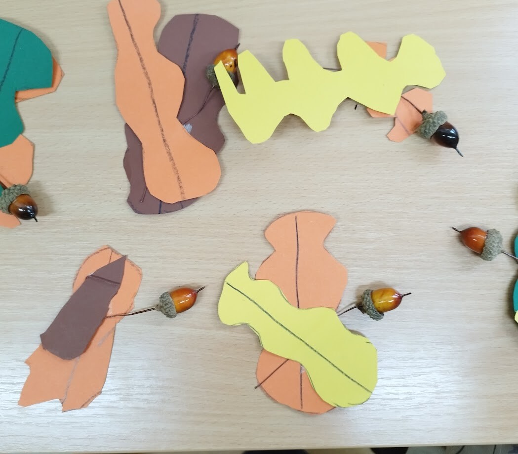 Stavění domečků nás opravdu bavilo. A nakonec nás podzimní čas přilákal ke stolečkům a k barevnému, tematickému a edukativnímu tvoření. Výtvory se opravdu povedly a zdobí naši třídu.