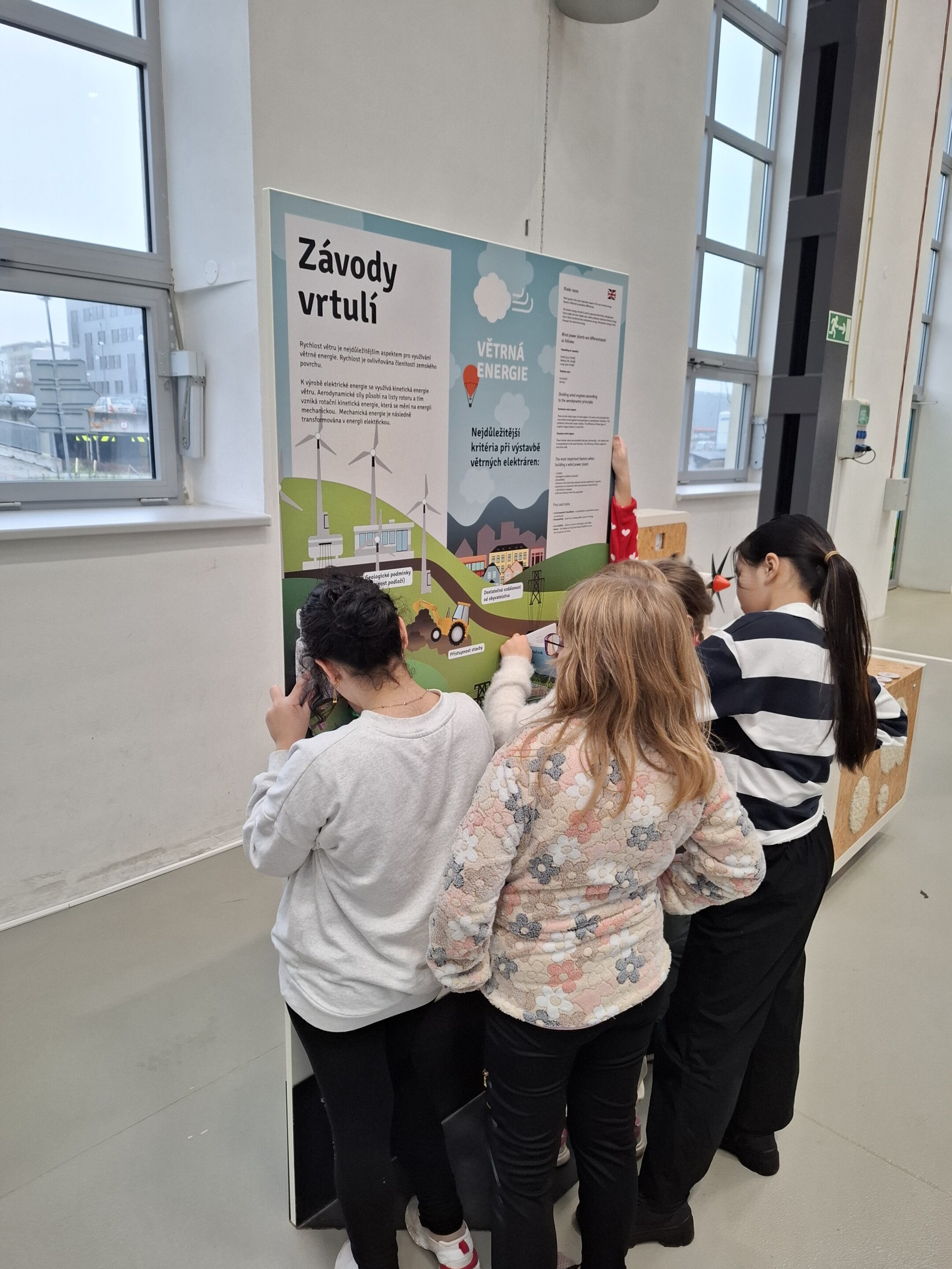 Ve druhé části žáci pracovali s pracovními listy, které doplňovali na základě informací z výukových panelů. Dozvěděli se, jak putuje elektrická energie od zdroje až k nám domů, a blíže poznali principy vodních, větrných i solárních elektráren. Zabývali se také možnostmi úspory energie. Vše si mohli prakticky ověřit díky interaktivním modelům, které dětem umožnily jednotlivé jevy vyzkoušet a lépe pochopit.