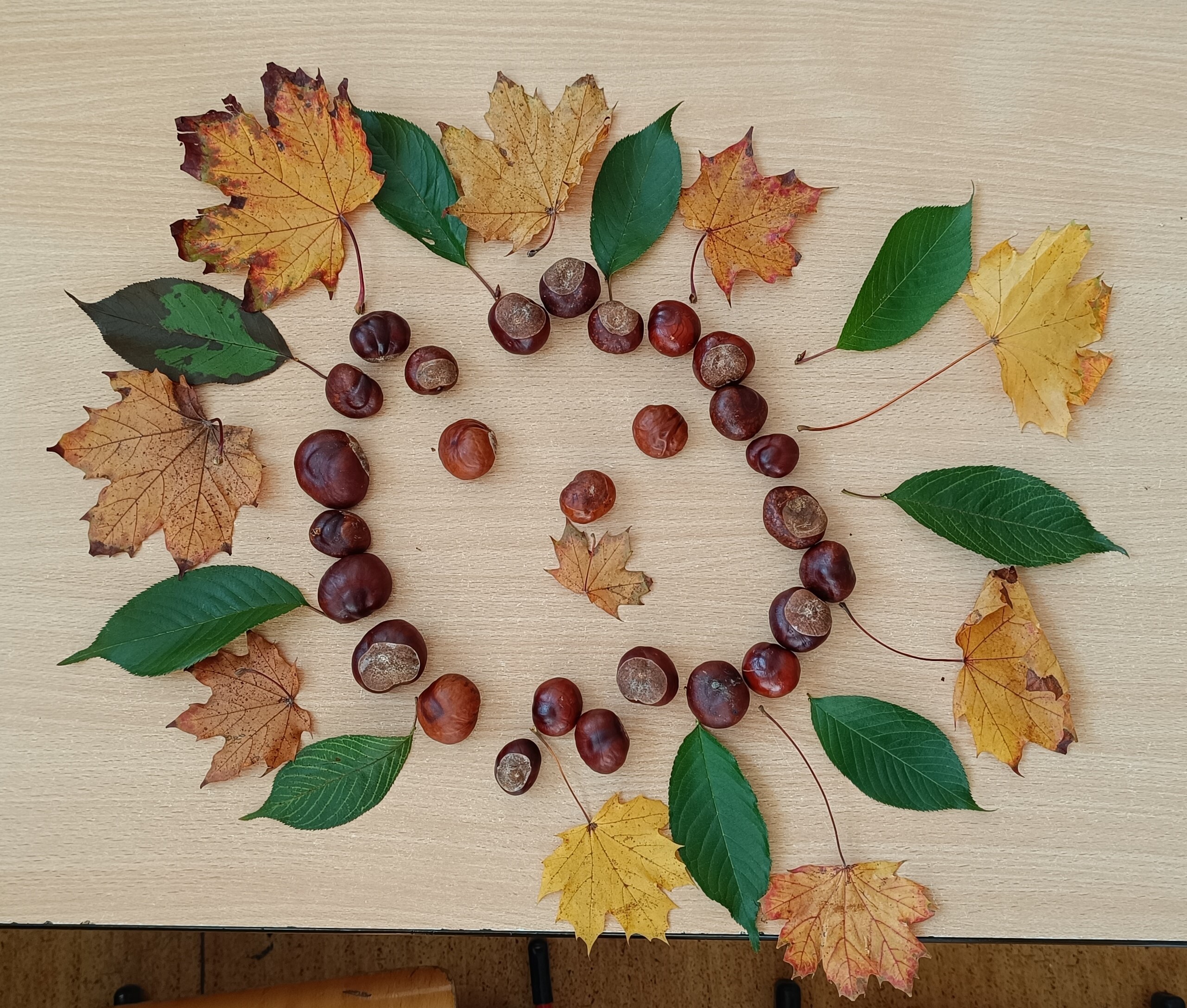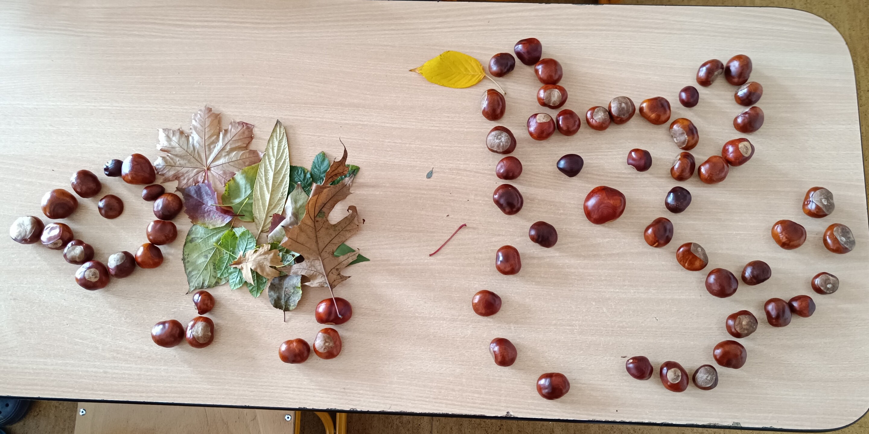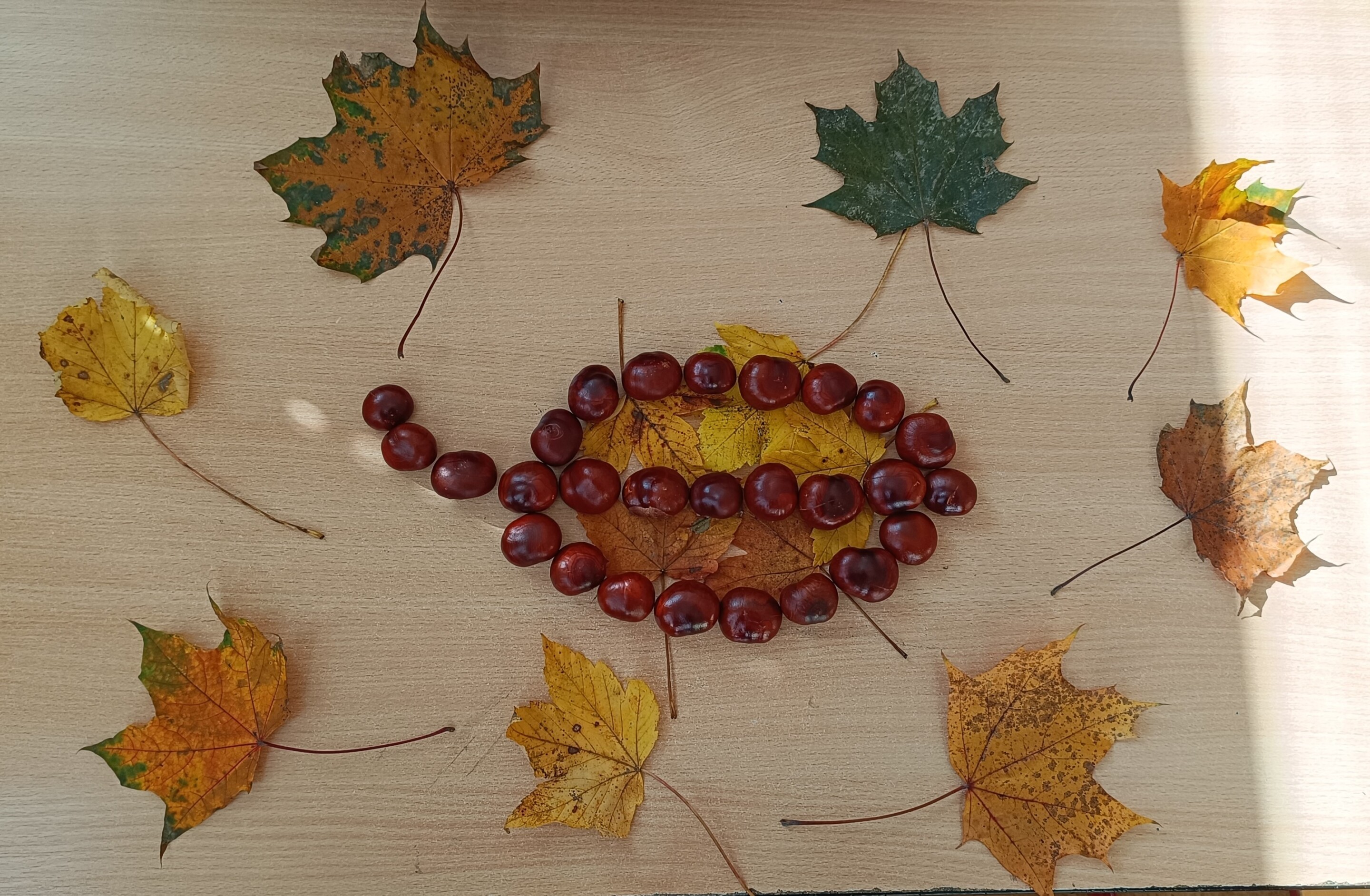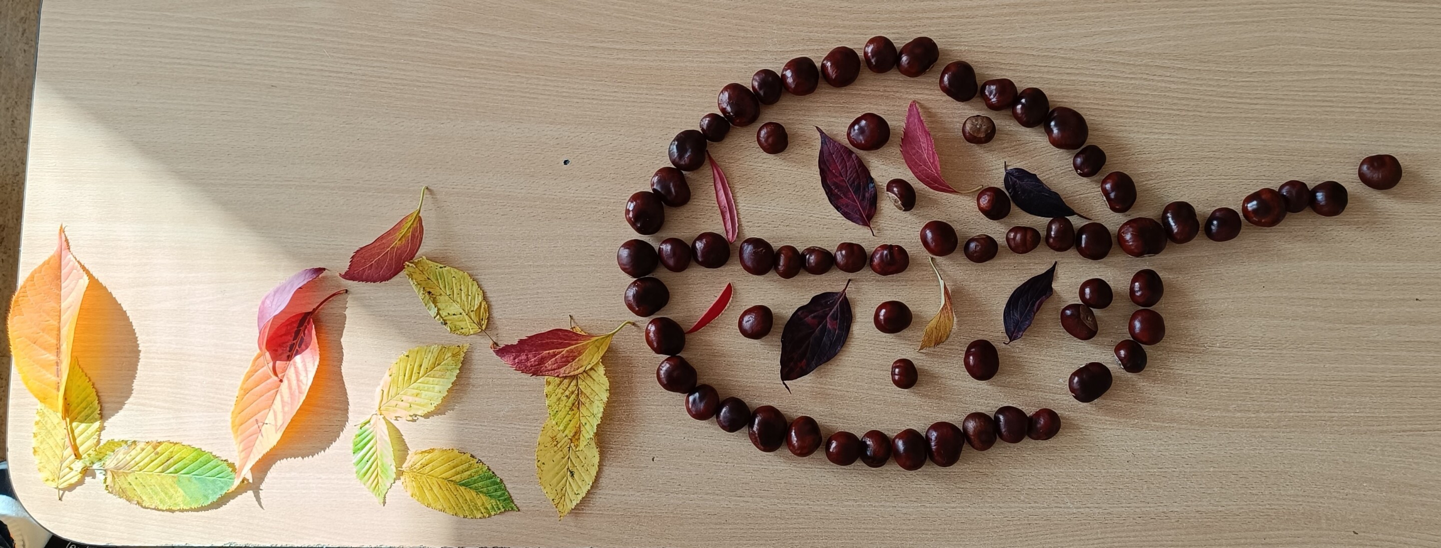 Podzimní období jsme se čtvrťáky v pracovním vyučování využili k tvoření z přírodních materiálů. Děti si samy nasbíraly a přinesly kaštany a barevné podzimní listy. Společně jsme si o nich povídali a pak se pustili do práce.