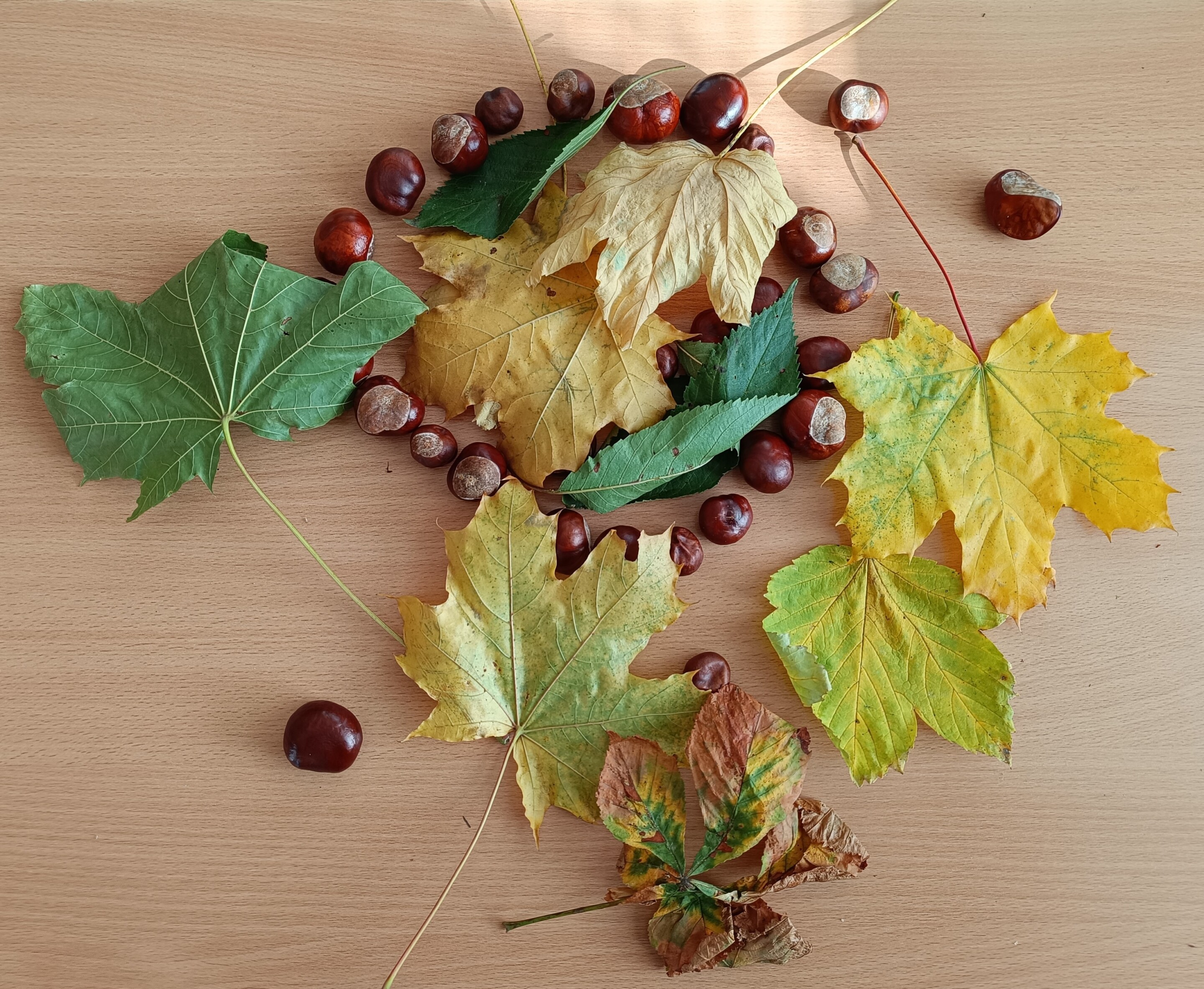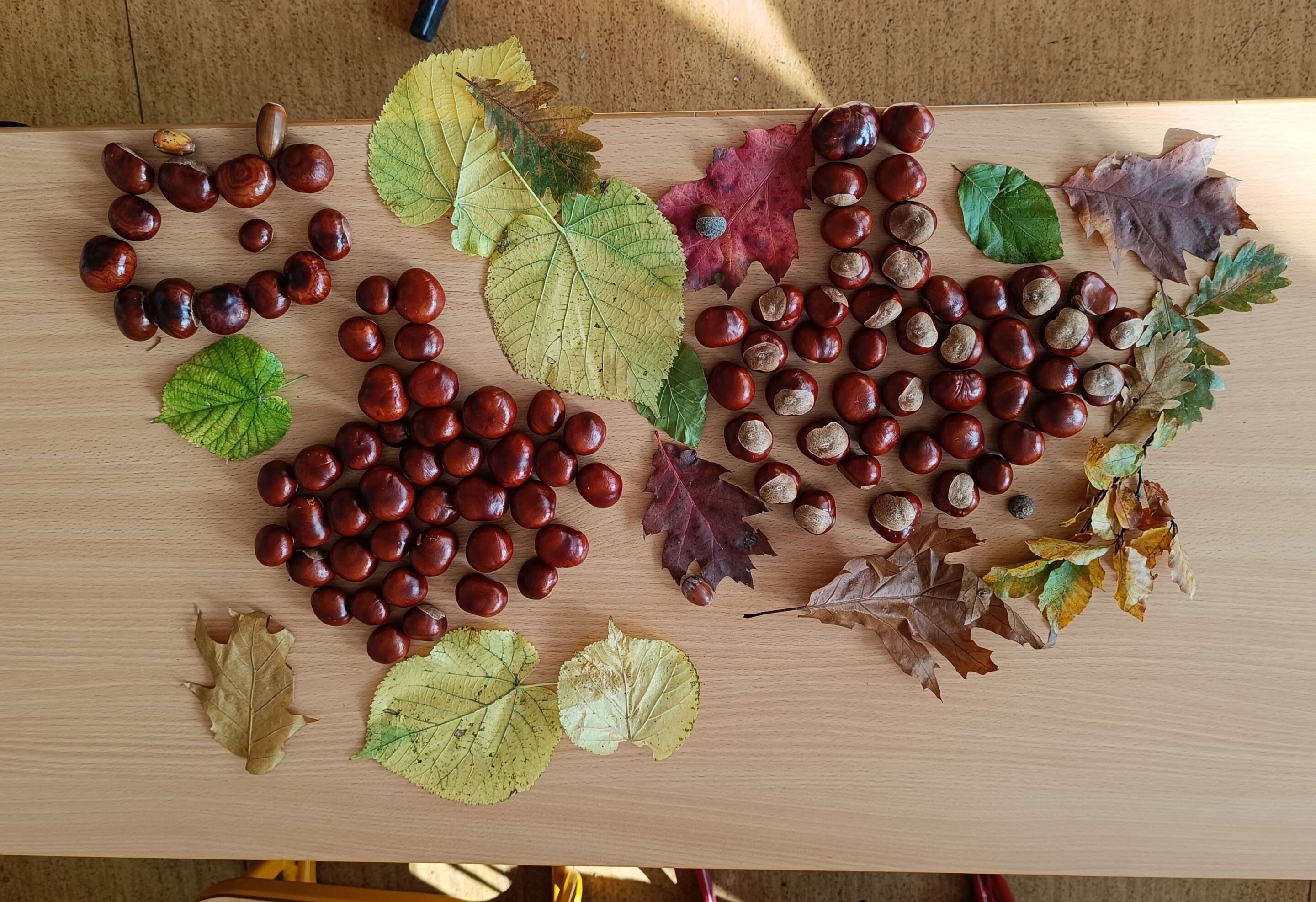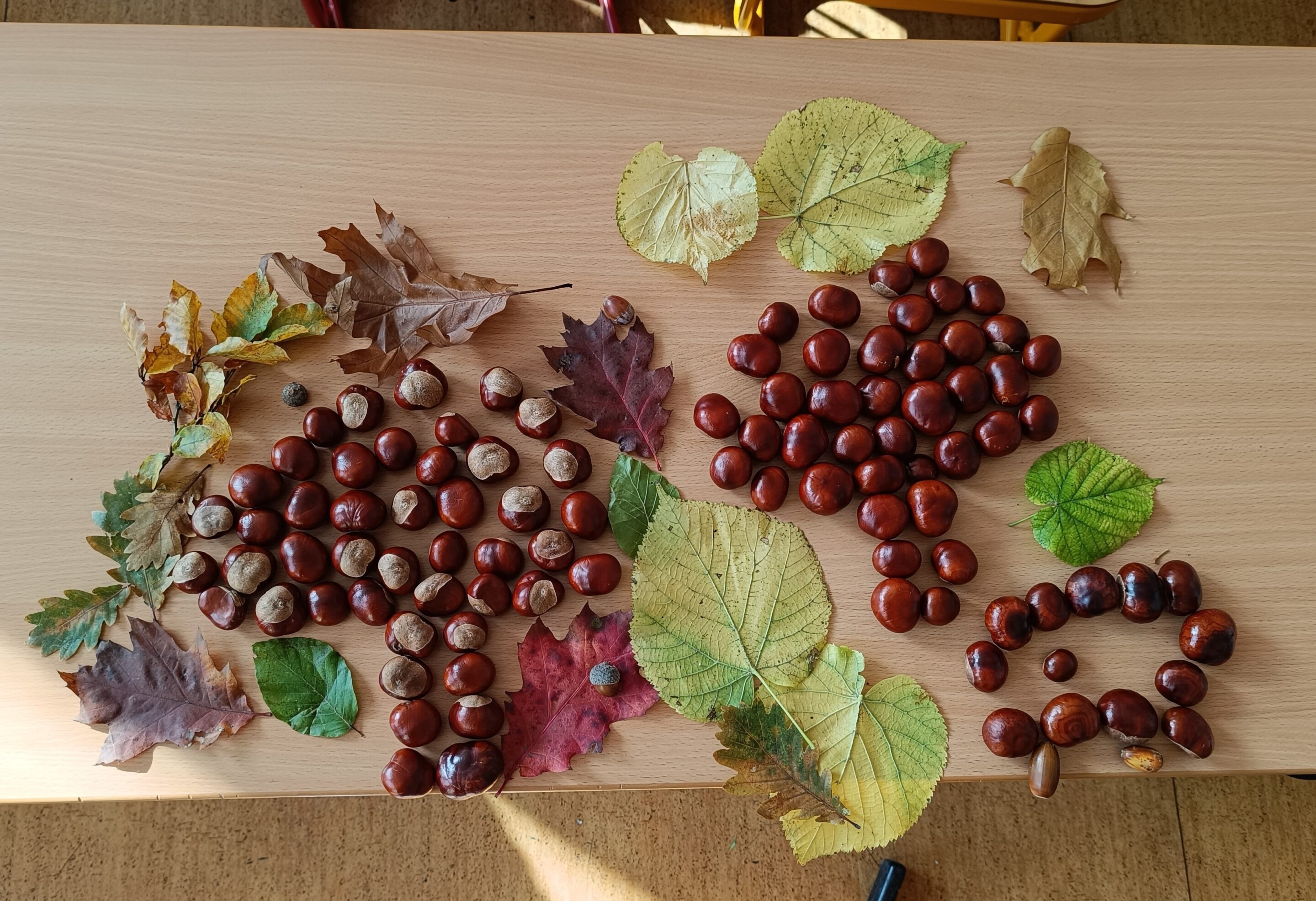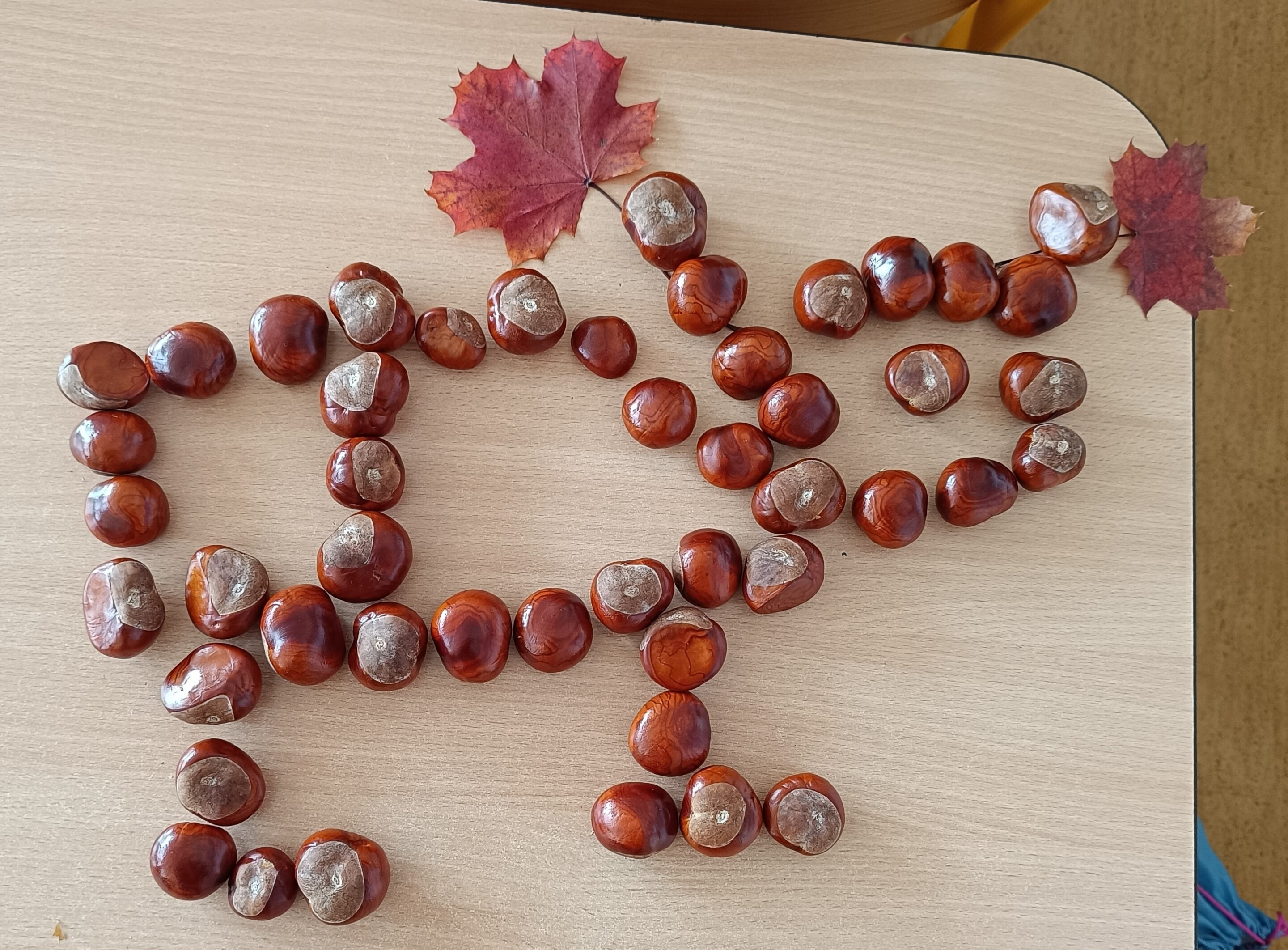 Podzimní období jsme se čtvrťáky v pracovním vyučování využili k tvoření z přírodních materiálů. Děti si samy nasbíraly a přinesly kaštany a barevné podzimní listy. Společně jsme si o nich povídali a pak se pustili do práce.