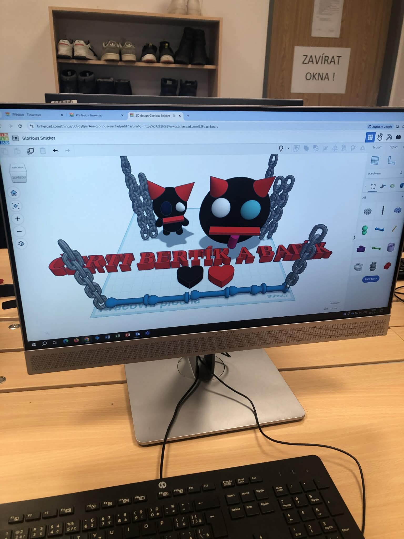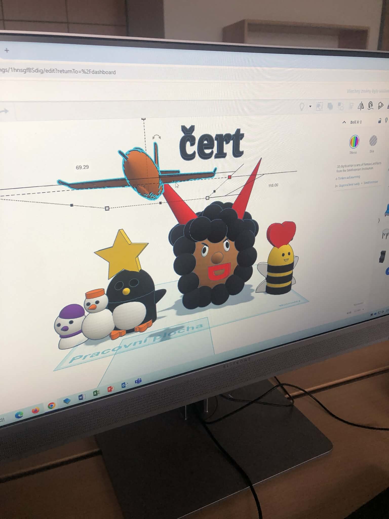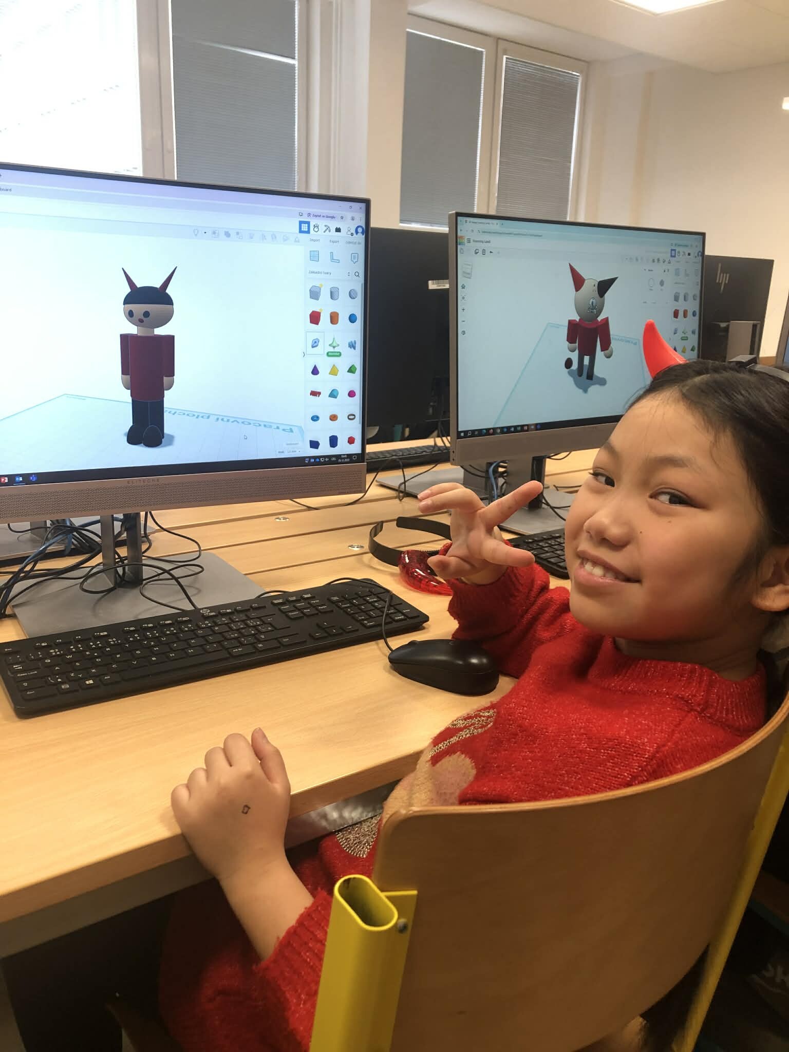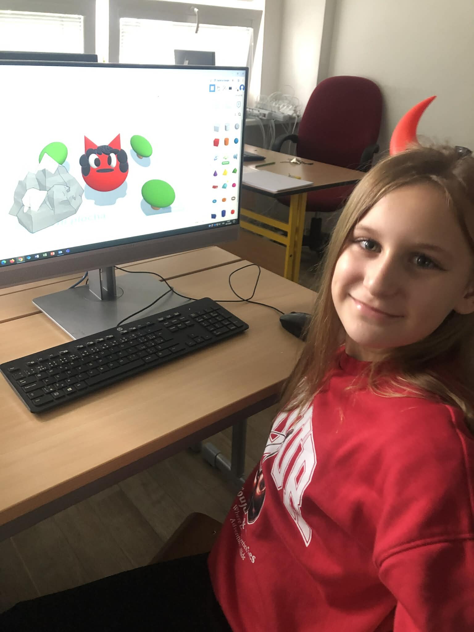 Žáci pátých tříd si vyzkoušeli práci v 3D programu a zároveň jsme tematicky využili den 5.12., kdy do školy obvykle chodí čerti. Úkolem bylo vytvořit vlastního čerta – od základních tvarů až po drobné detaily, jako jsou rohy, řetězy nebo huňaté vlasy.