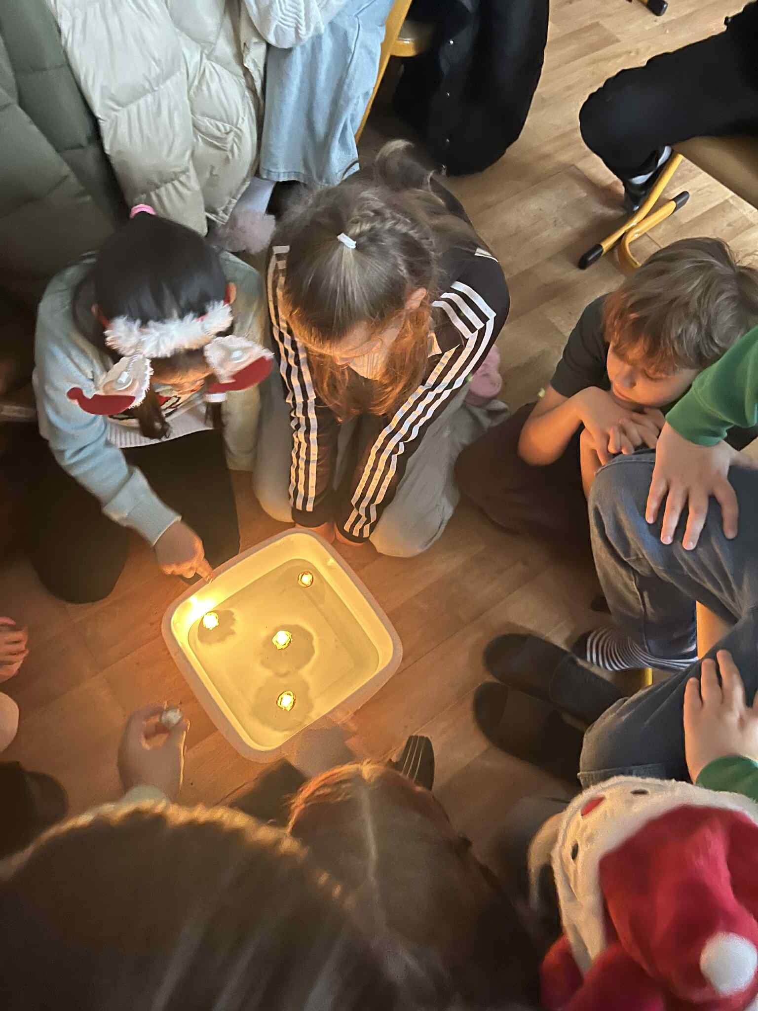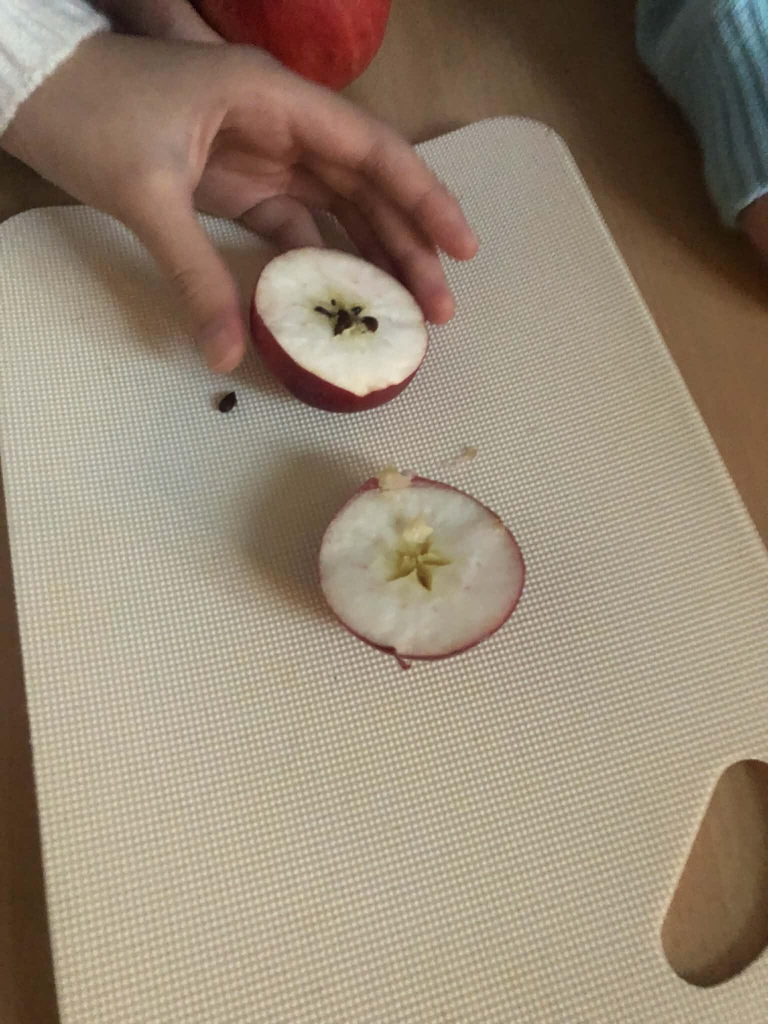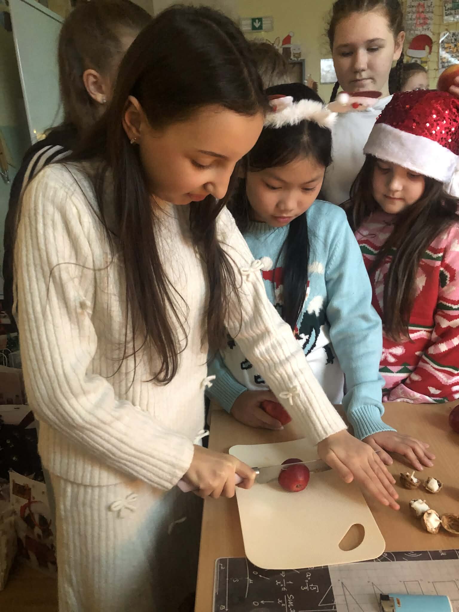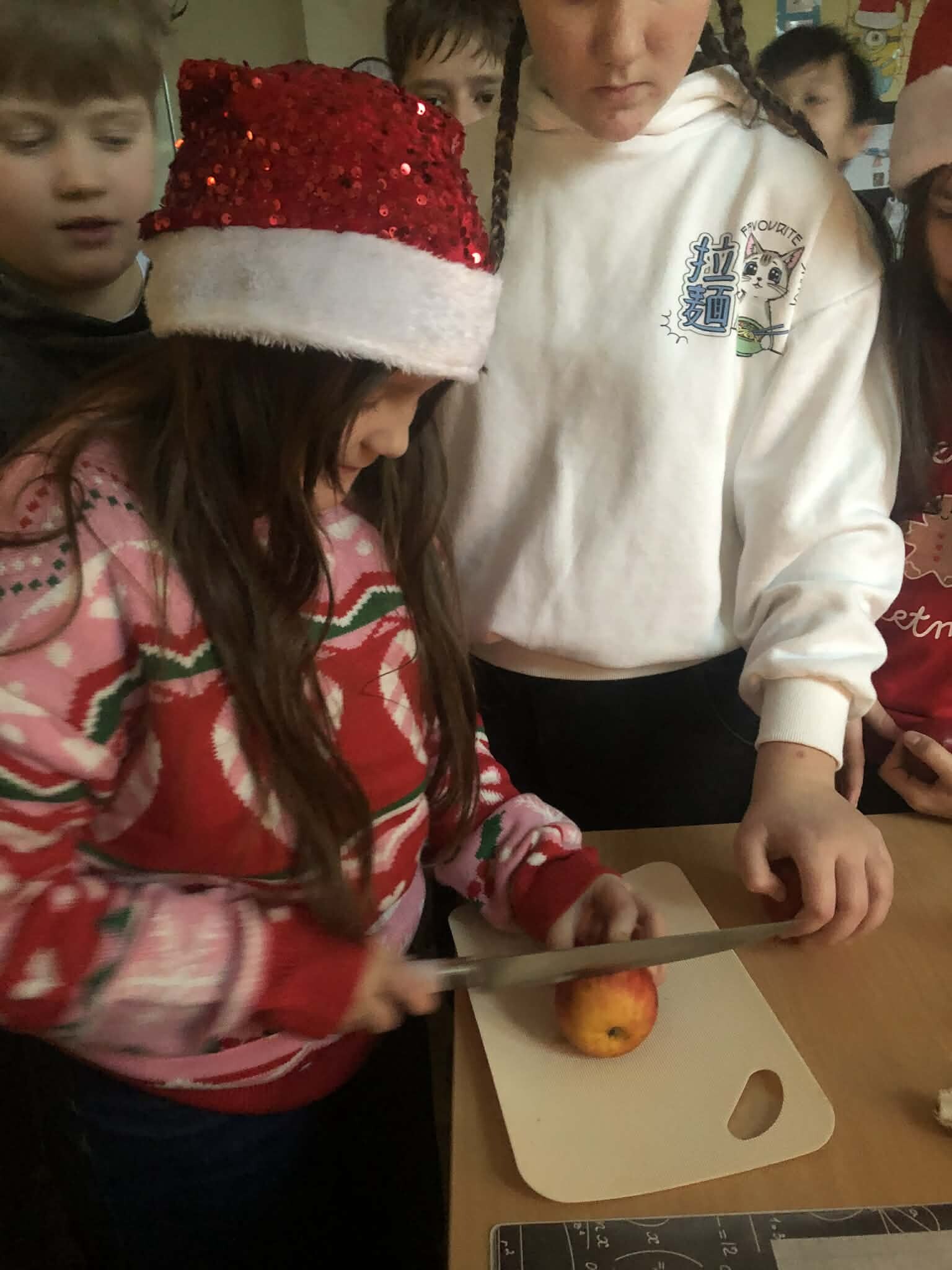 Následně jsme si vyzkoušeli některé vánoční tradice. Krájeli jsme jablíčka – a velkou radost nám udělalo, že se všem objevily krásné hvězdičky. Pouštěli jsme také lodičky a se zaujetím sledovali, jak se na vodě chovají a kam poplují.