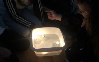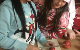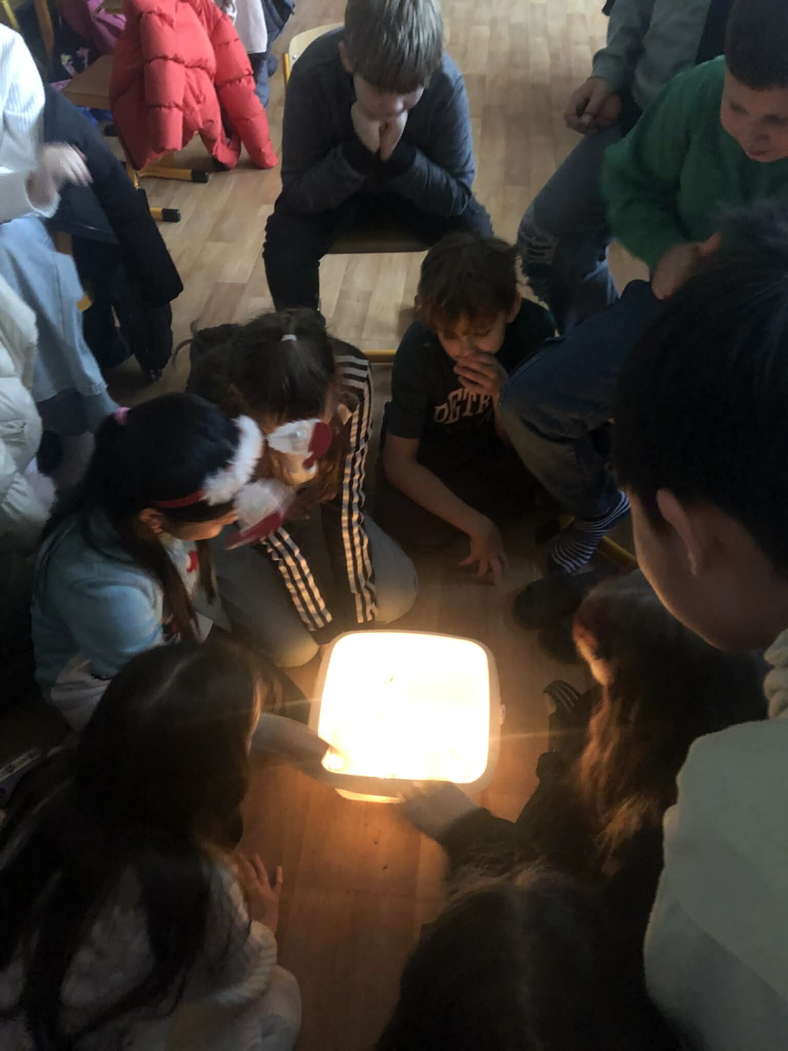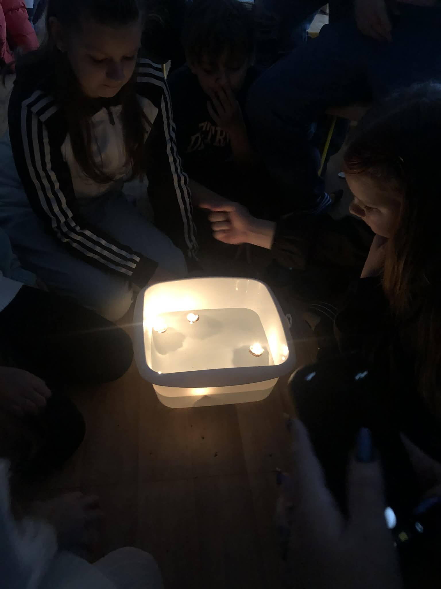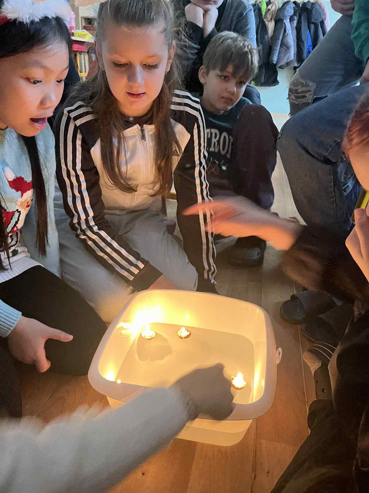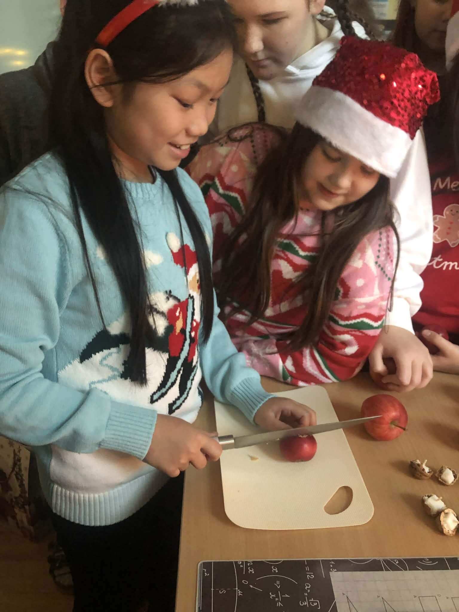 Následně jsme si vyzkoušeli některé vánoční tradice. Krájeli jsme jablíčka – a velkou radost nám udělalo, že se všem objevily krásné hvězdičky. Pouštěli jsme také lodičky a se zaujetím sledovali, jak se na vodě chovají a kam poplují.