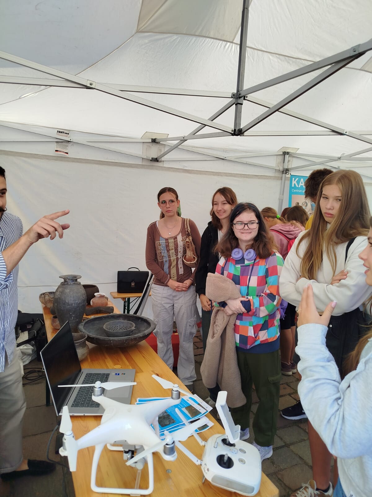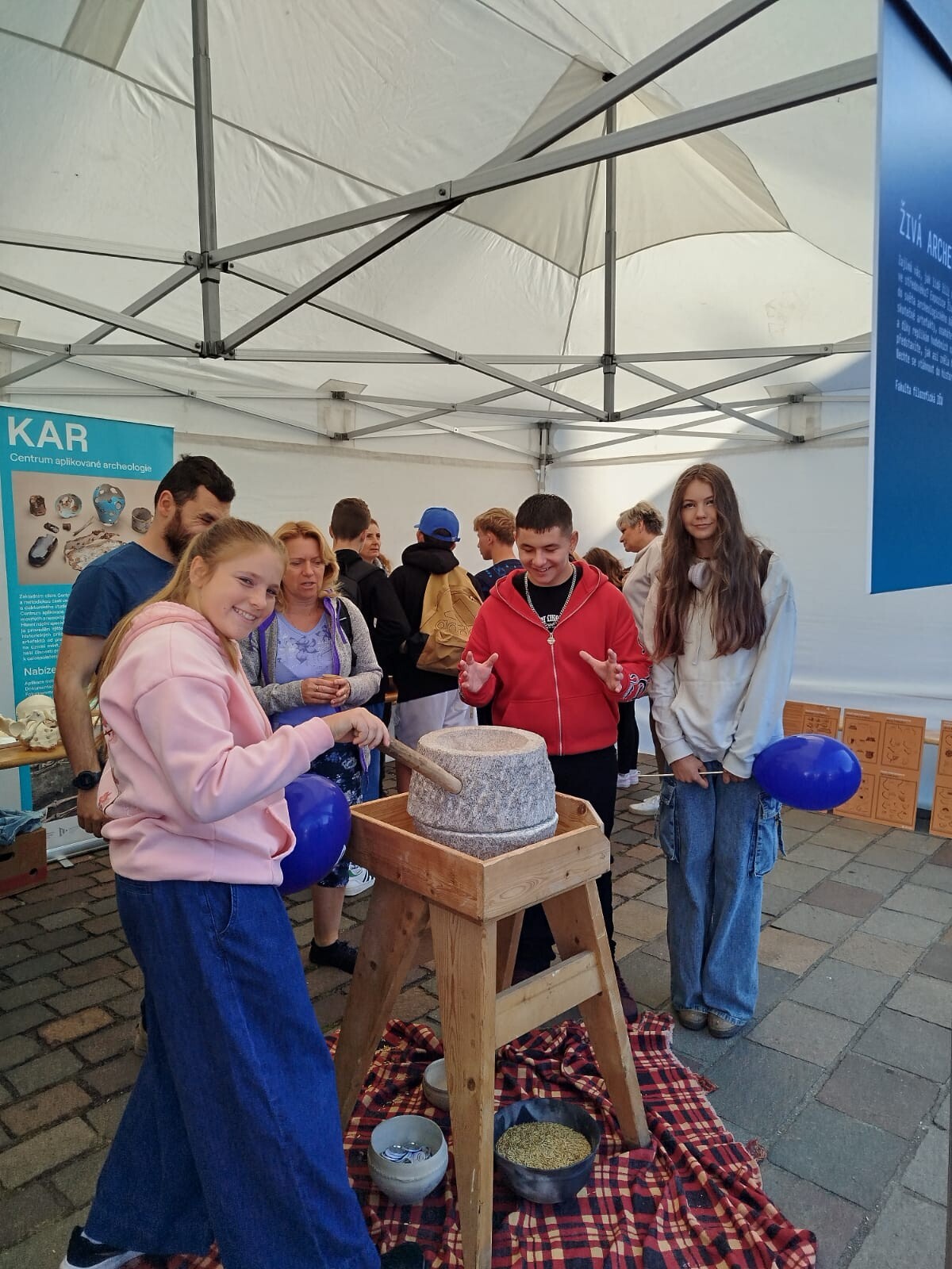 Nejvíce se nám líbil robopes, což je robot určený pro záchranné složky a je nasazován v náročném terénu. V dalším stánku jsme řešili únikovku s matematickou zápletkou, za rozluštěný číselný kód jsme získali sladkou odměnu. V dalších stanovištích na nás čekal 3D tisk, fyzikální pokusy, využití plazmové technologie a různé rébusy a logické hry. Mohli jsme naprogramovat robotickou včelku, aby se správně přesunula k zadanému cíli. Zkusili jsme si, kolik dřiny (šlapání na kole) je potřeba k rozsvícení řady žárovek. Nechyběl ani jazykový koutek se zábavnými úkoly. Expozice Živá archeologie nás vtáhla do světa archeologického bádání a vyzkoušeli jsme si odlít skutečnou pečeť z pečetního vosku.