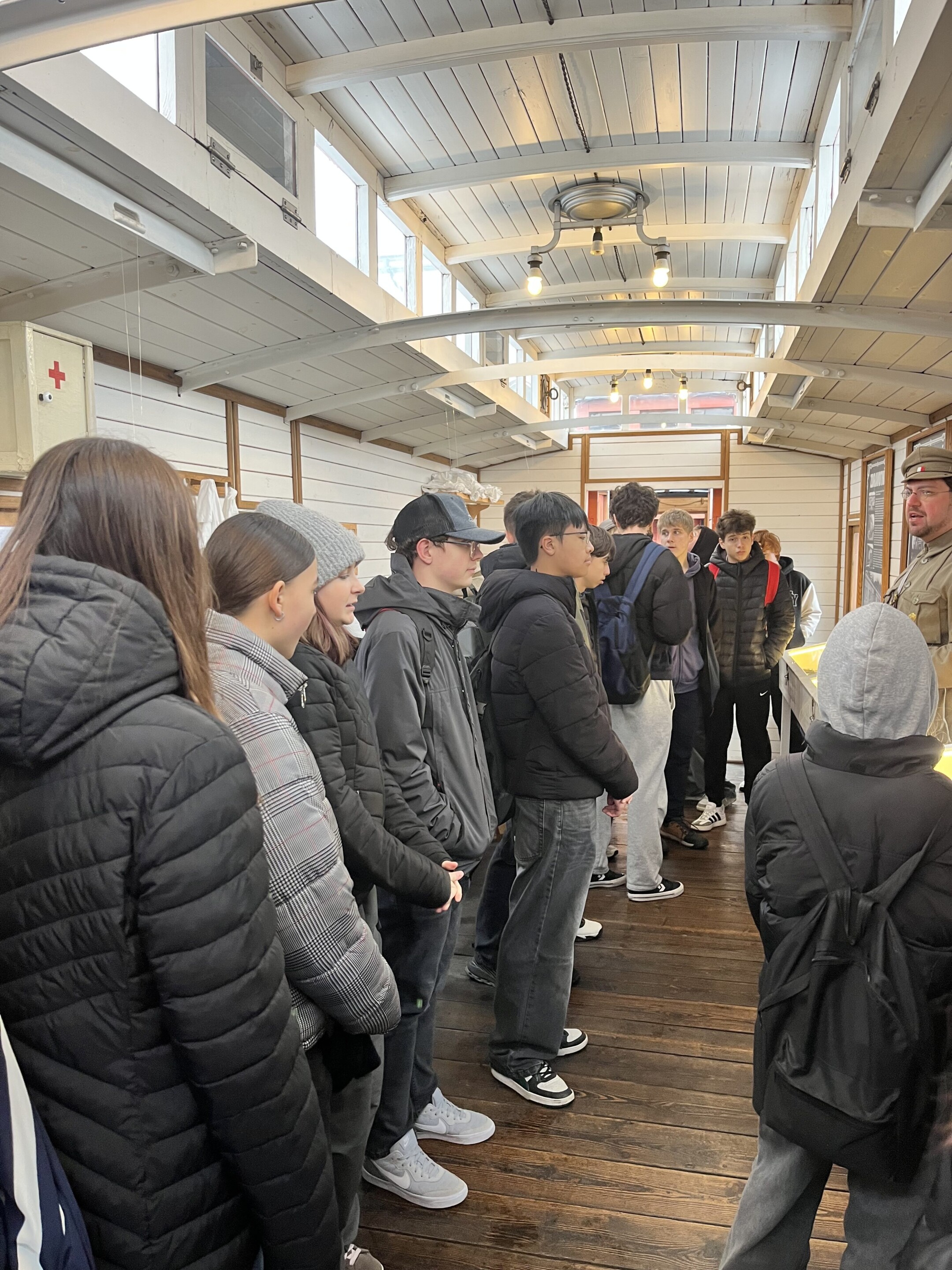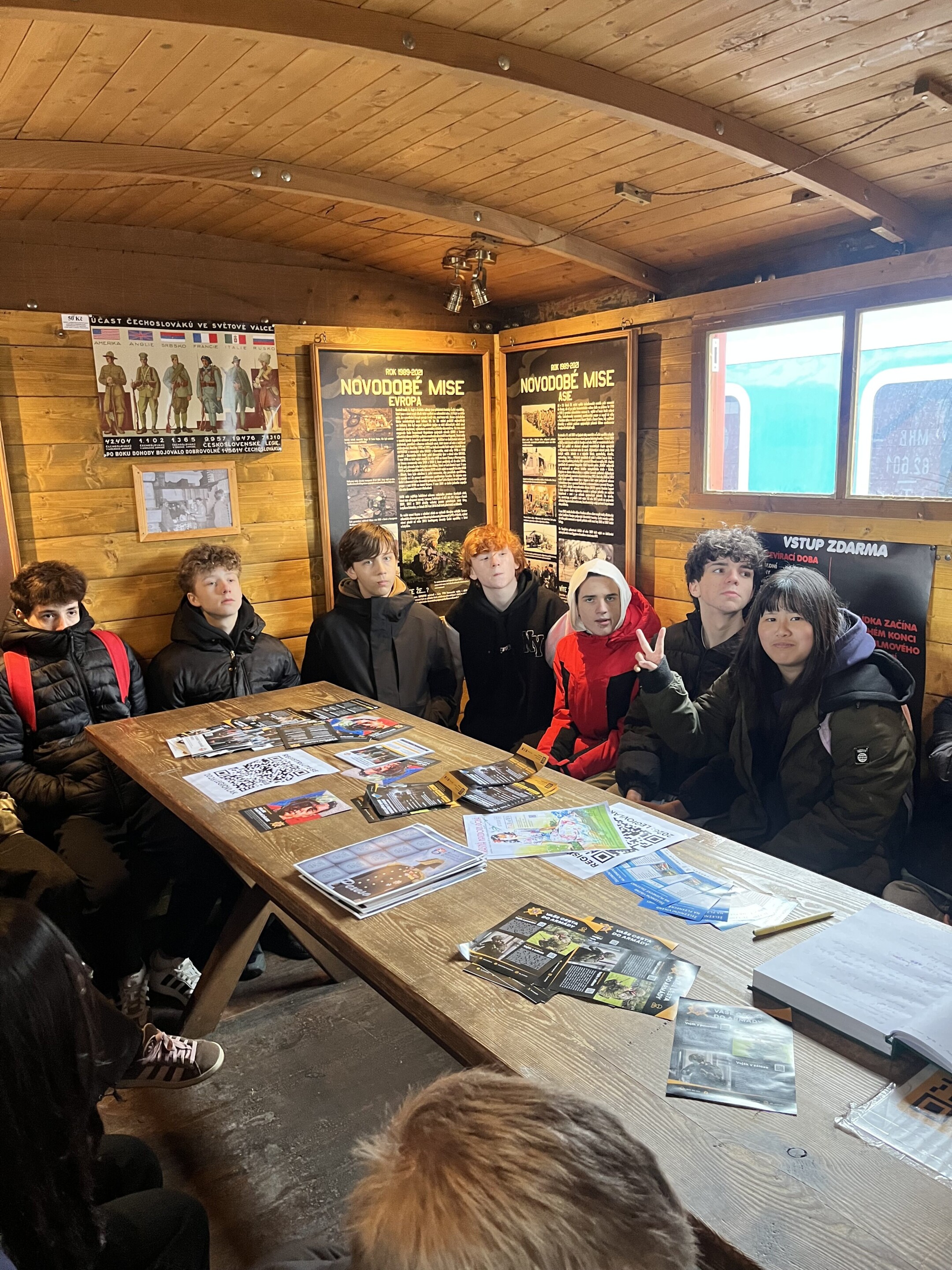 Žáci 8.A se v pátek 10. 4. 2026 vydali na nevšední výpravu za poznáním historie. Jejich cílem byl Legionářský vlak – unikátní pojízdné muzeum, které přibližuje život a osudy československých legionářů během první světové války. Každý z vagónů byl pečlivě zrekonstruován tak, aby co nejvěrněji odpovídal skutečným legionářským vlakům, které projížděly Ruskem během bojů. Uvnitř mohli žáci vidět například ubytovací vagón, polní poštu, zdravotnický vůz nebo velitelské stanoviště. Během prohlídky se žáci dozvěděli mnoho zajímavostí o životě československých legionářů. Nechyběly ani autentické předměty, uniformy a fotografie, které pomohly přiblížit každodenní realitu vojáků a jejich život na dálné Sibiři. Návštěva Legionářského vlaku byla pro 8.A velmi poučná. Žáci si odnesli nové znalosti o důležité kapitole českých dějin a zároveň si uvědomili hodnotu svobody, kterou dnes považujeme za samozřejmost. Celá exkurze se setkala s velkým nadšením, které nenarušilo ani nepříznivé počasí.