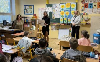 Ve čtvrtek 02. 10. 2025 přišly osobně pogratulovat našim výtvarníkům paní náměstkyně primátora pro oblast školství Lucie Kantorová a vedoucí odboru školství paní Dagmar Škrlantová. Krásné dárky převzali žáci i třídní učitelka J. Krenkelová spolu s paní asistentkou P. Vackovou