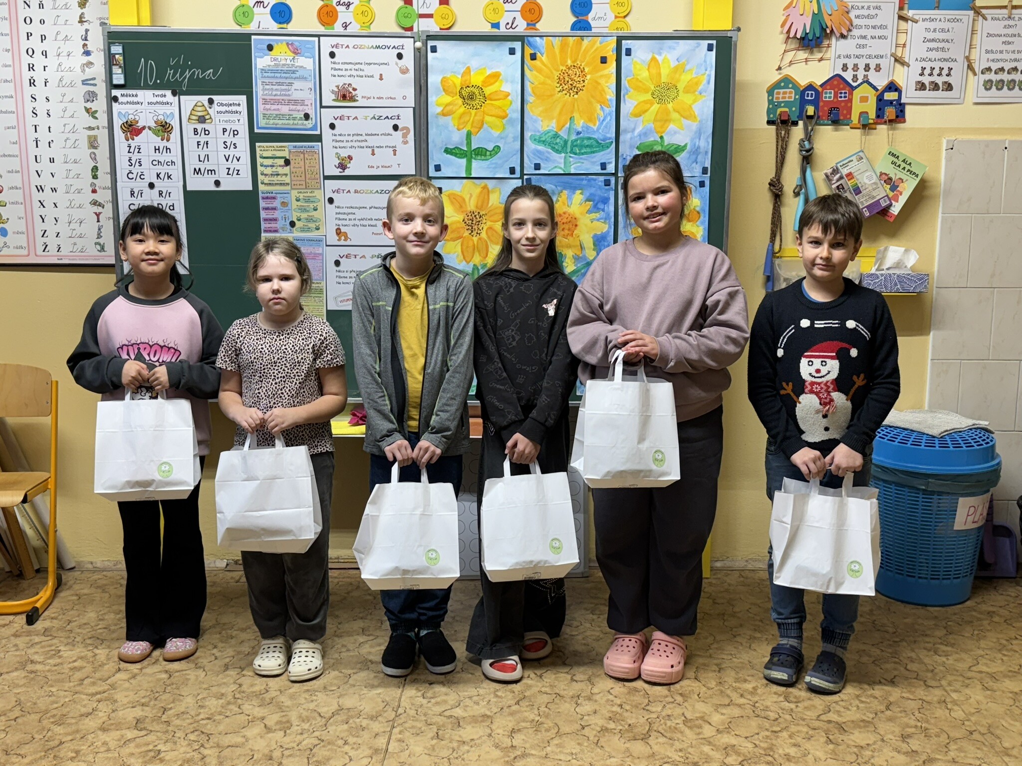 Protože víme, že na tomto tématu pracovala i druhá skupina žáků-druháků, kteří měli skoro stejně pěknou koláž :-), ale prostě byla druhá, v pátek 10. 10. 2025 jsme dalším sedmi třeťákům předali ocenění na školní úrovni! 🙂