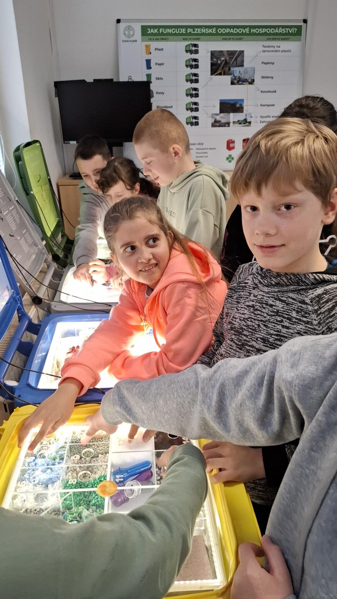 Velkým zážitkem byla prohlídka techniky, kterou pracovníci používají při svozu odpadu. Žáci si mohli zblízka prohlédnout svozová vozidla a dozvědět se, jak fungují. Někteří si dokonce mohli vyzkoušet, jaké to je sedět v kabině řidiče.
