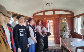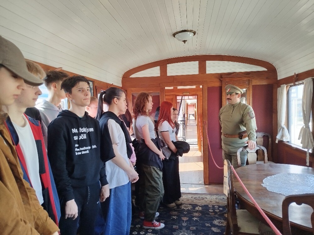 Mohli jsme si prohlédnout jednotlivé vagony, které sloužily jako ubytování, nemocnice, pošta, dílna nebo velitelské stanoviště. Každý vagon byl vybaven dobovými předměty, což nám pomohlo si lépe představit každodenní život vojáků v náročných podmínkách.