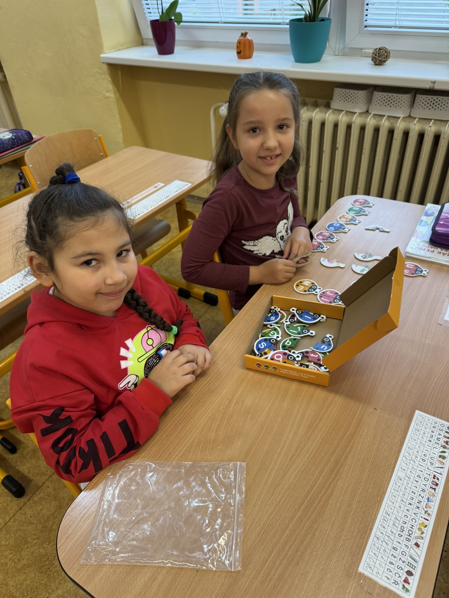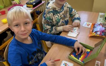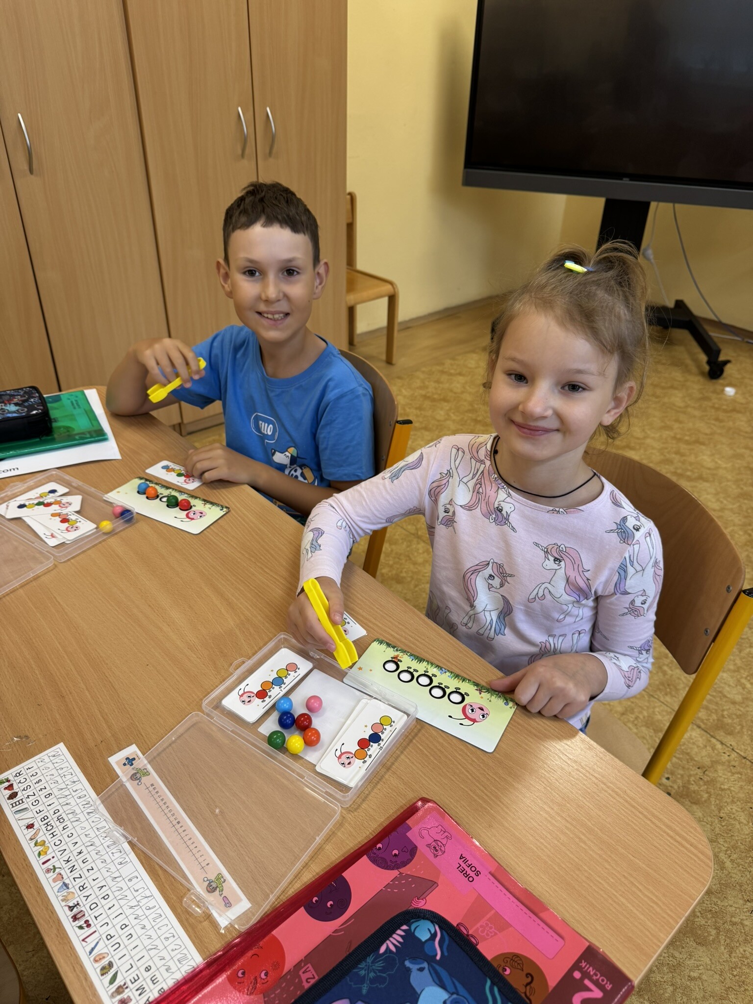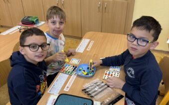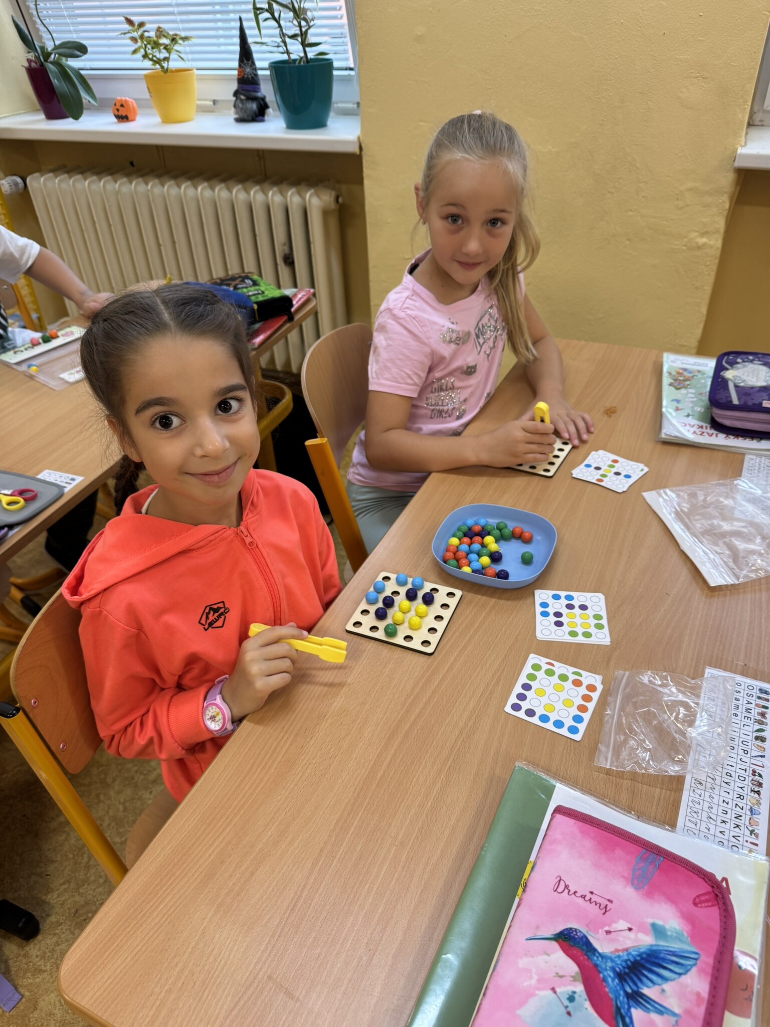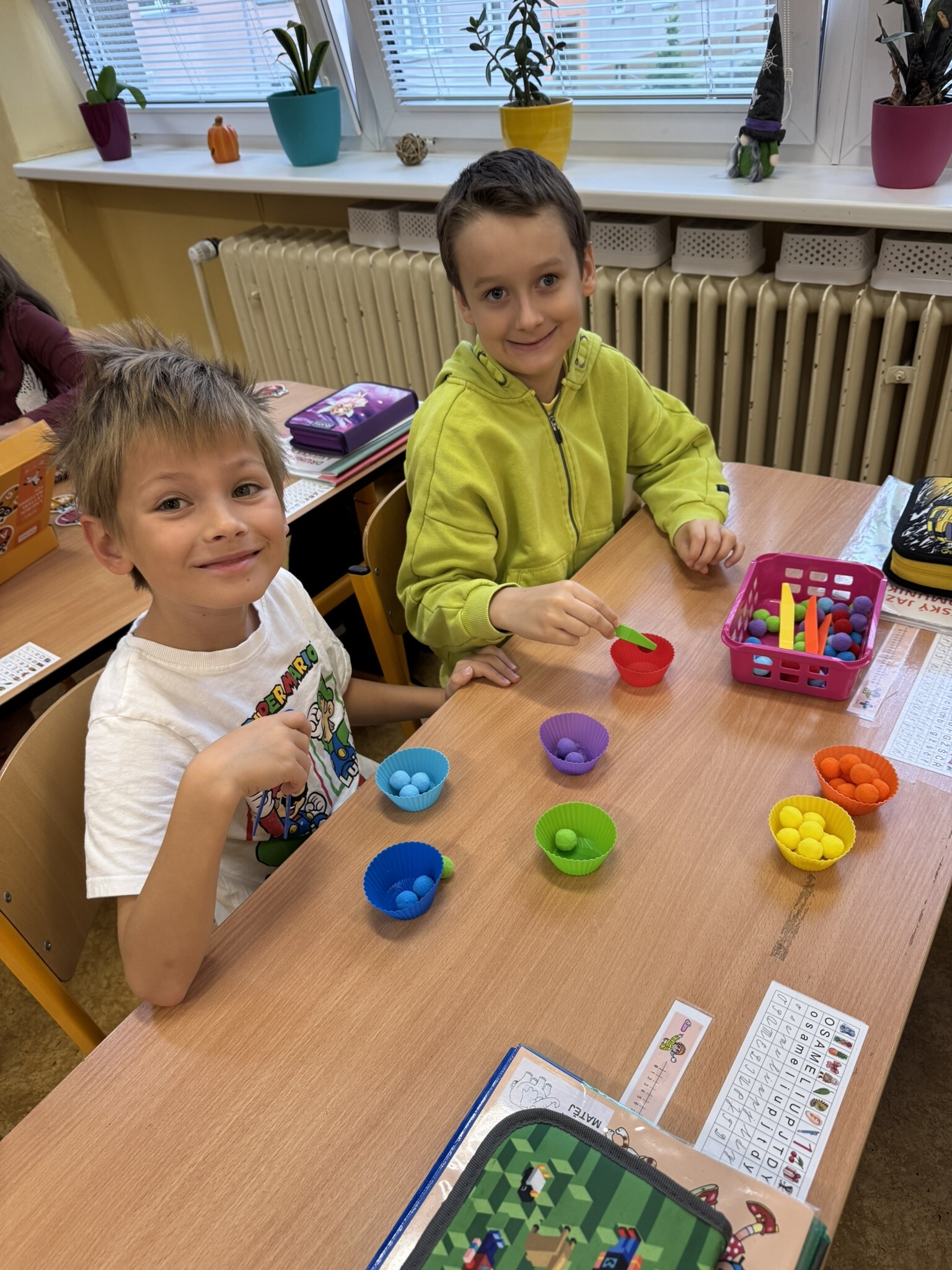 Žáci II. A se na hodinku vrátili do první třídy. V rámci hodiny českého jazyka je čekaly netradiční uvolňovací a grafomotorické cviky zaměřené na uvolnění horních končetin a rozvoje jemné motoriky. K tomu si procvičili zrakové vnímání, ale také pozornost a paměť. V každém centru pro ně byla připravená tematická aktivita jako například malování do krupice, stavění dřívek dle obrázkového vzoru, sbírání kuliček pomocí pinzety, skládání puzzlíků abecedy nebo barevné housenky.