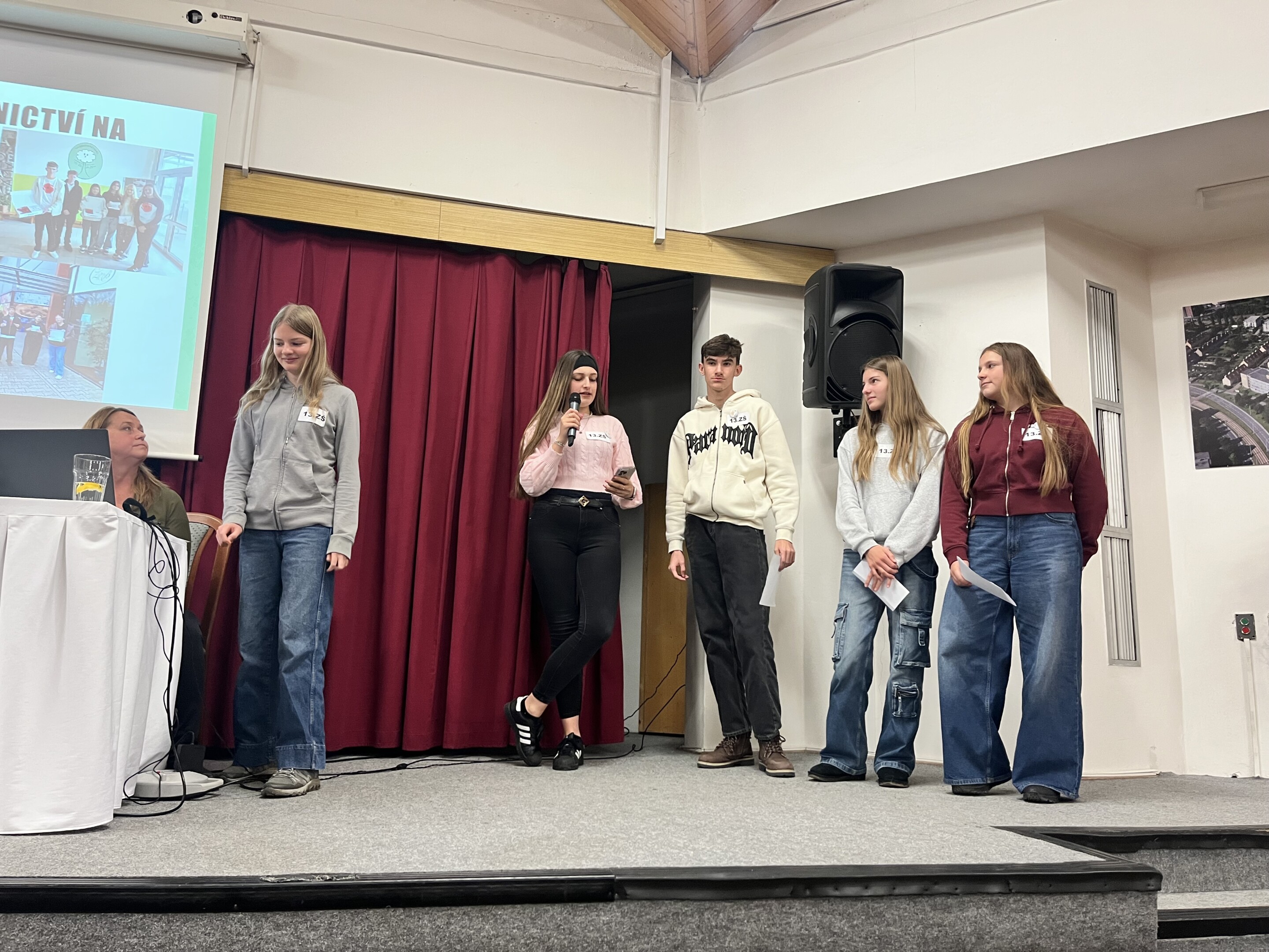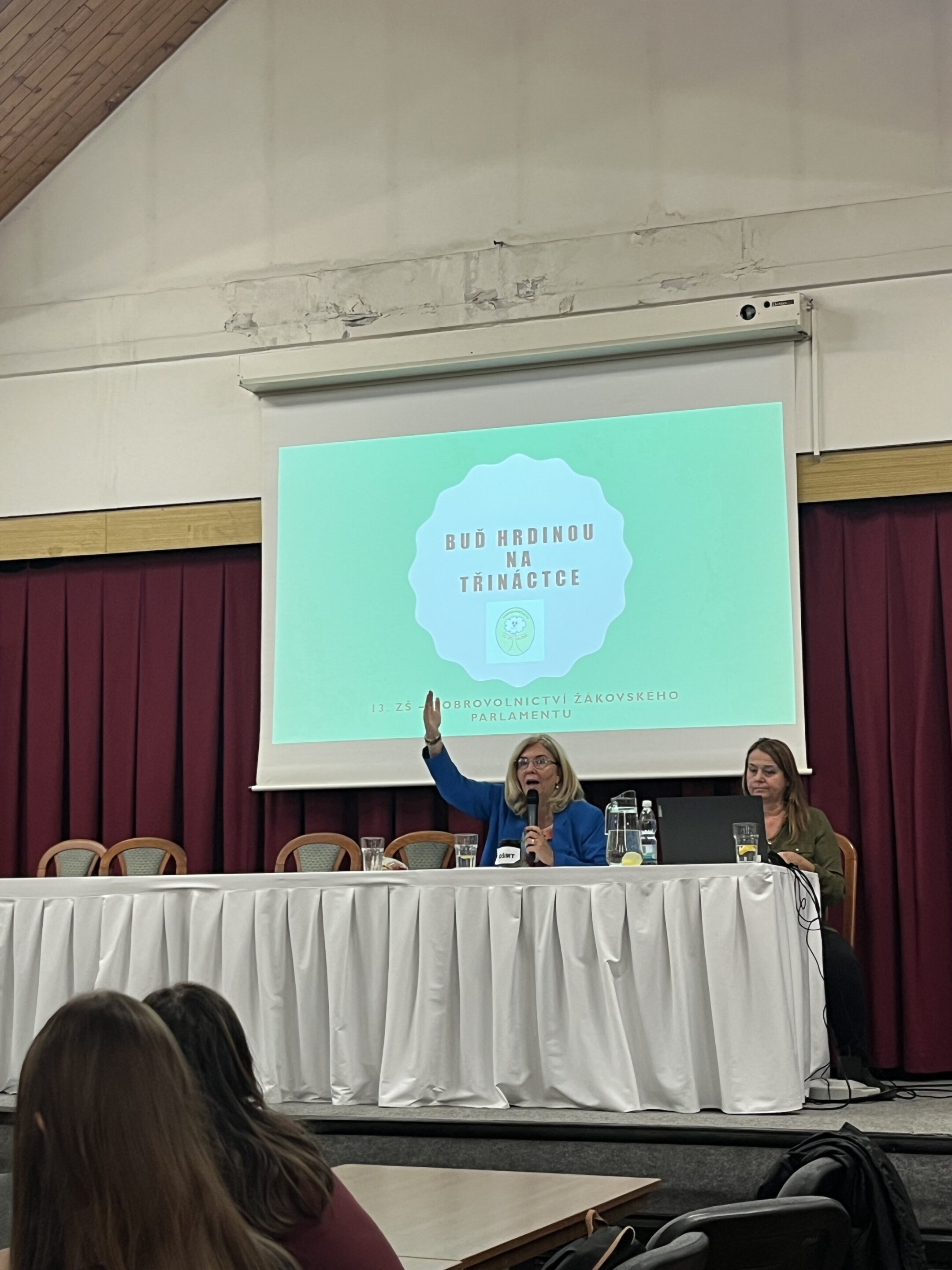 Zástupci našeho školního parlamentu se dne 28. 11. zúčastnili zasedání Žákovského městského parlamentu, jehož hlavním tématem bylo dobrovolnictví a zapojení škol do nejrůznějších sbírek či projektových dnů. Během setkání proběhla řada přednášek zaměřených na možnosti, jak mohou žáci aktivně pomáhat ve svém okolí, podporovat dobročinné aktivity a organizovat akce, které obohacují život celé školy. Všechny prezentace byly velmi inspirativní a přínosné. Naši zástupci získali mnoho nových nápadů a zkušeností, které mohou využít při plánování dalších aktivit školního parlamentu. Setkání si velmi užili a odnesli si z něj nejen nové poznatky, ale i motivaci do další práce.