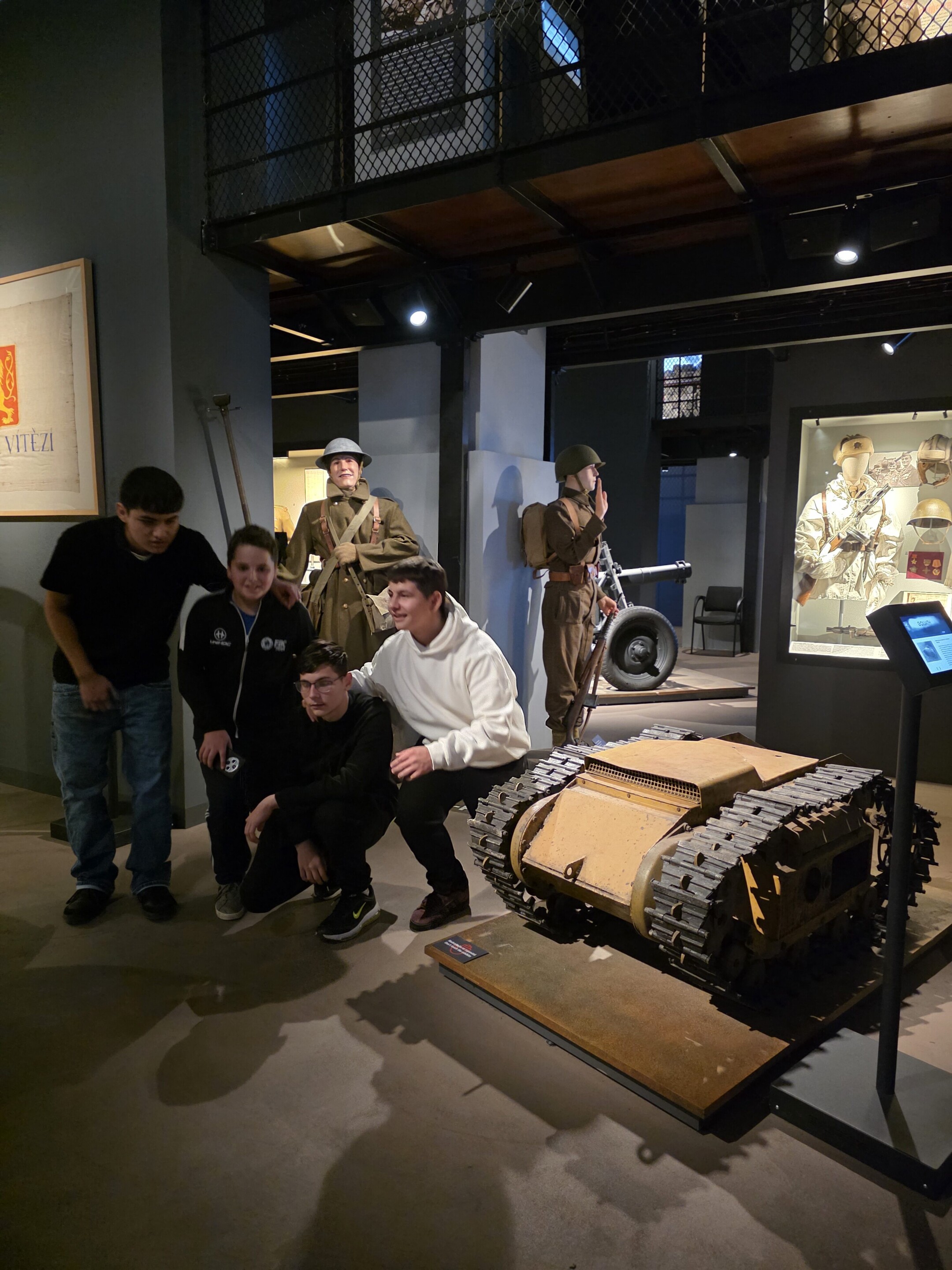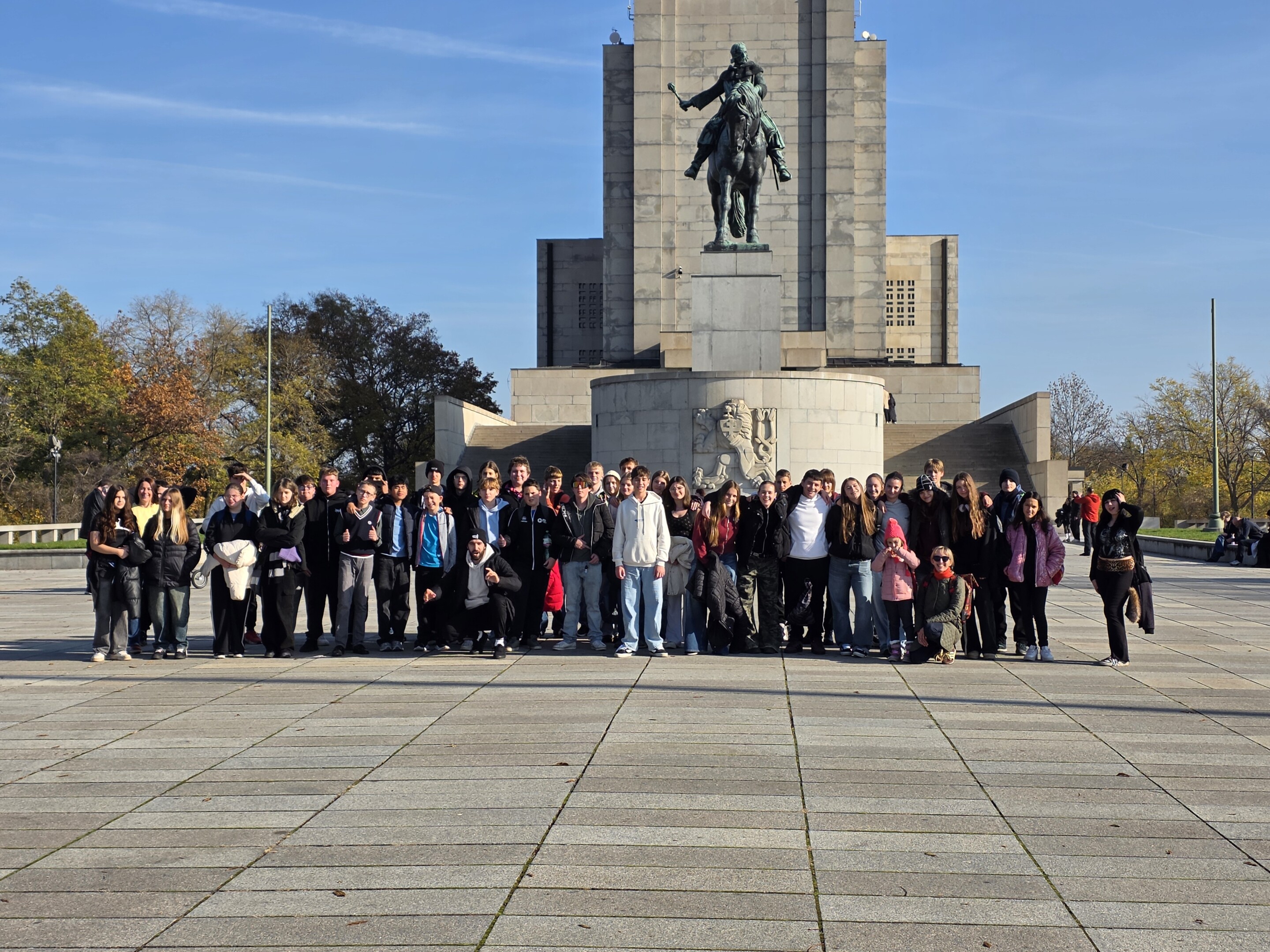 Dne 6.11.2025 jsme se s žáky 8.C a 9.B vydali do Armádního muzea Žižkov a Národního památníku na Vítkově v Praze. V muzejních expozicích měli žáci možnost seznámit se s vojenskou historií českých zemí s důrazem na období obou světových válek, což skvěle doplnilo a obohatilo učivo dějepisu. Po prohlídce muzea jsme se přesunuli k monumentálnímu Národnímu památníku na Vítkově, kde jsme si prohlédli jezdeckou sochu Jana Žižky z Trocnova, která je symbolem české státnosti. Celý výlet za poznáním se velmi vydařil, žáci projevili velký zájem o probíranou látku a díky příjemnému počasí jsme si mohli vychutnat i krásný panoramatický výhled na Prahu.