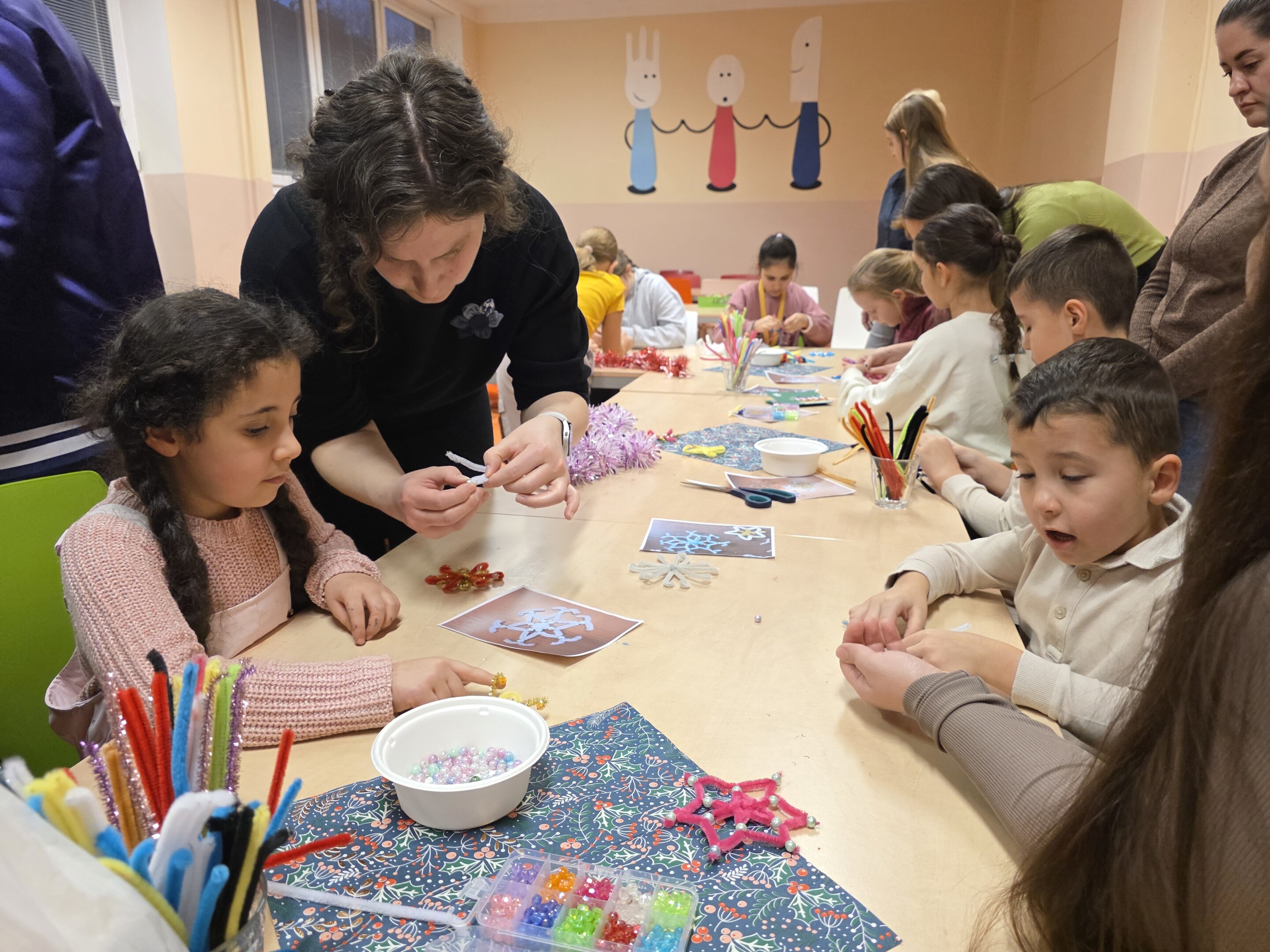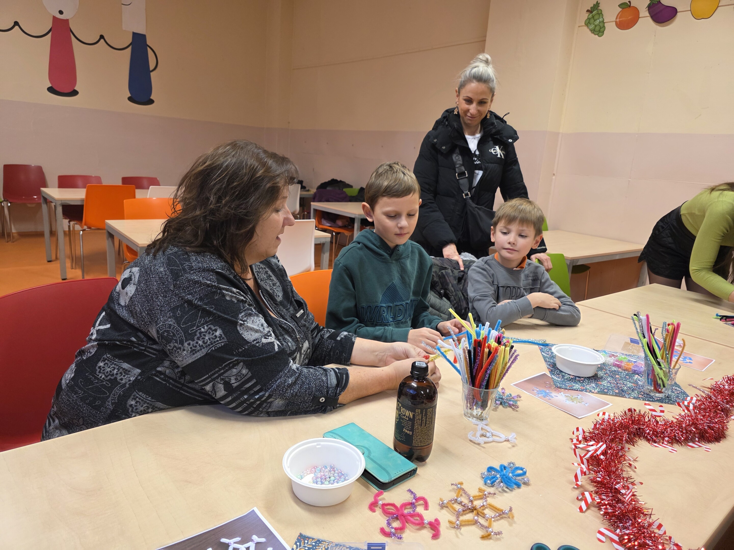 Po úvodním vystoupení sboru se návštěvníci rozprchli do jednotlivých dílen, kde si děti spolu s rodiči mohly vyzkoušet výrobu nejrůznějších vánočních dekorací. Tvořily se vánoční zápichy, nádherné hvězdičky, papírové ozdoby, vánoční přáníčka i drobné dárky pro blízké. Kreativní nadšení panovalo v každé dílně a hotové výrobky si účastníci odnášeli domů jako milou památku na společně strávený čas. Velký zájem tradičně vzbudilo také zdobení perníčků. Zde mohly děti dát volný průchod své fantazii.