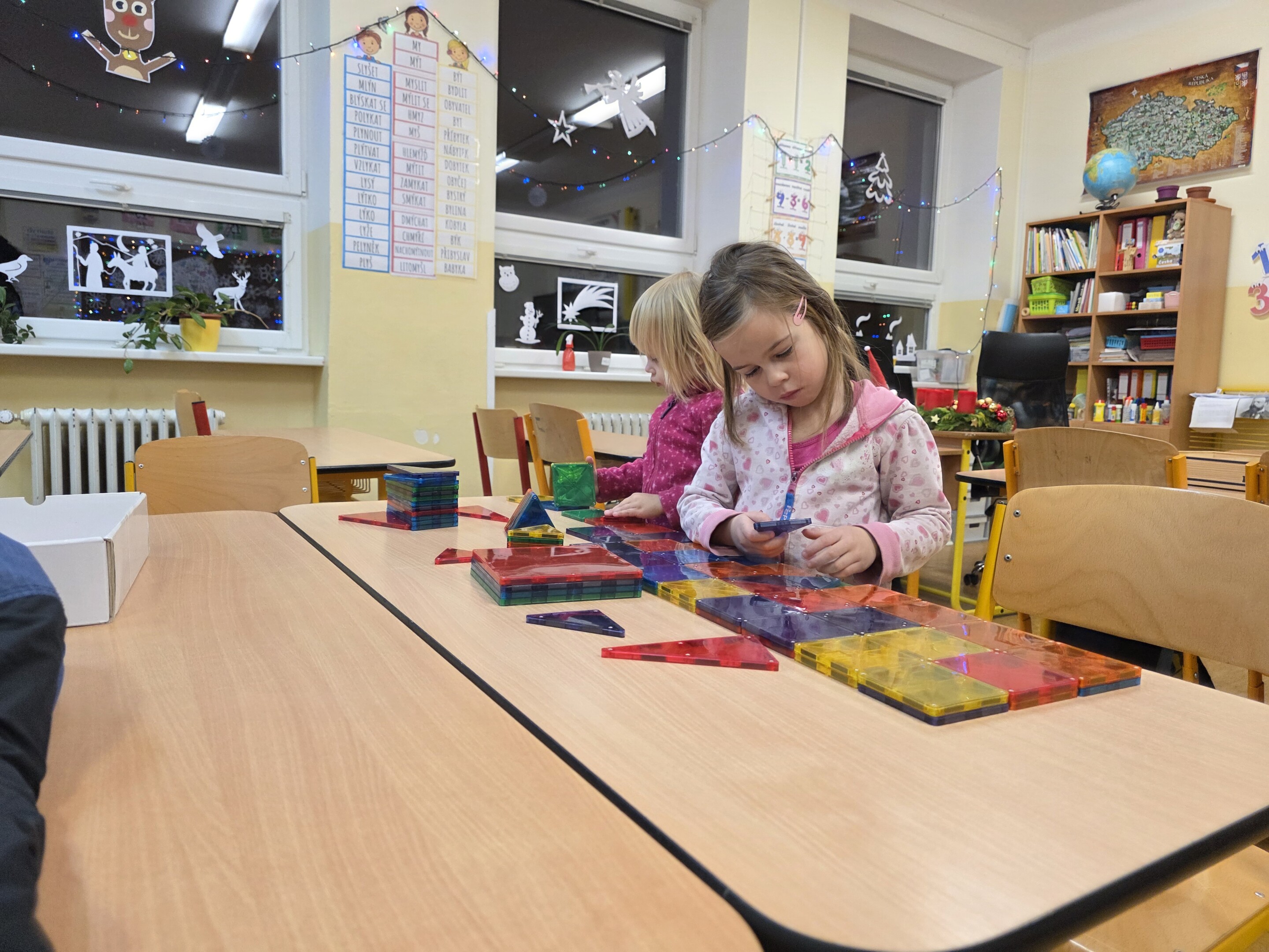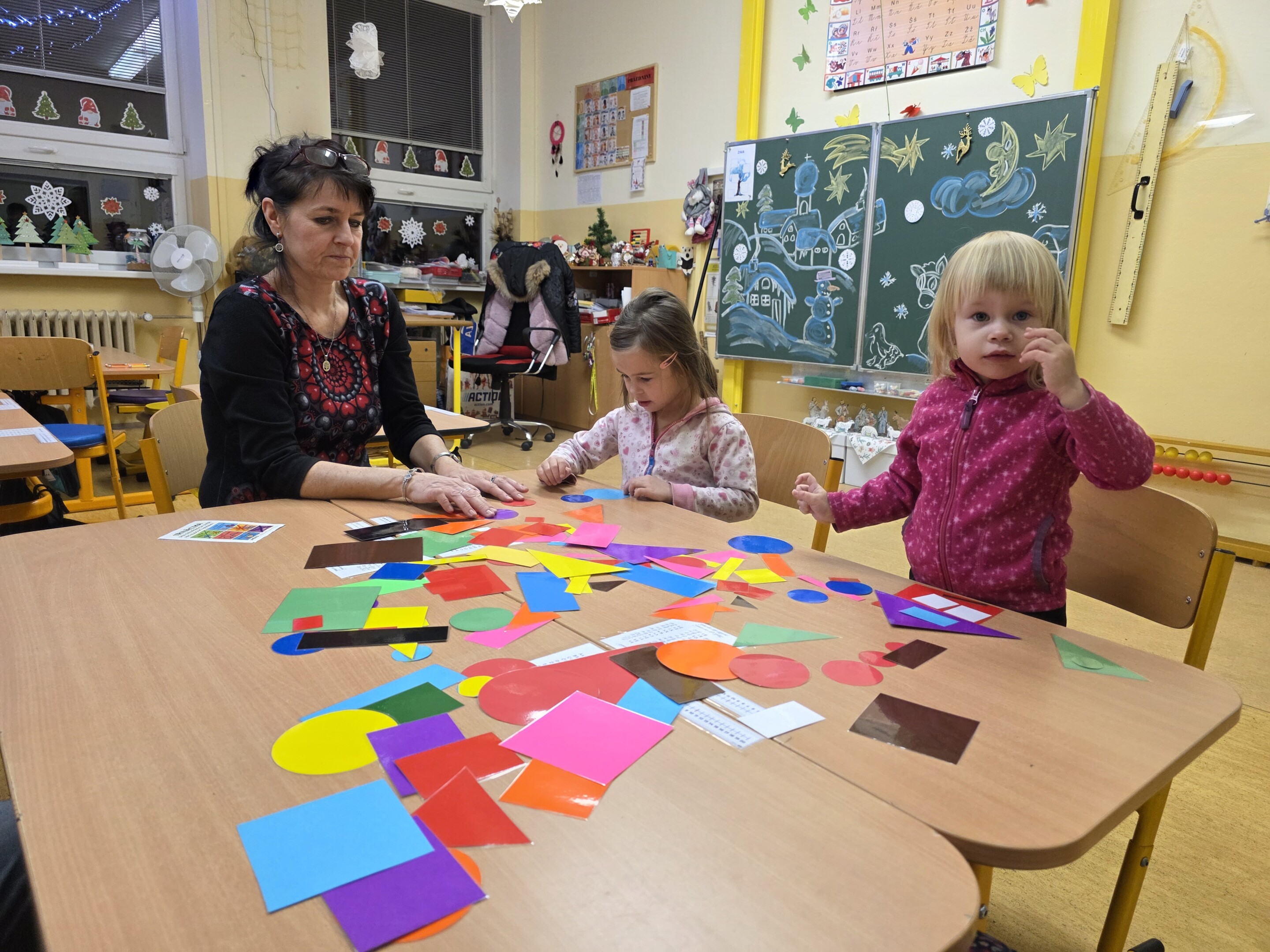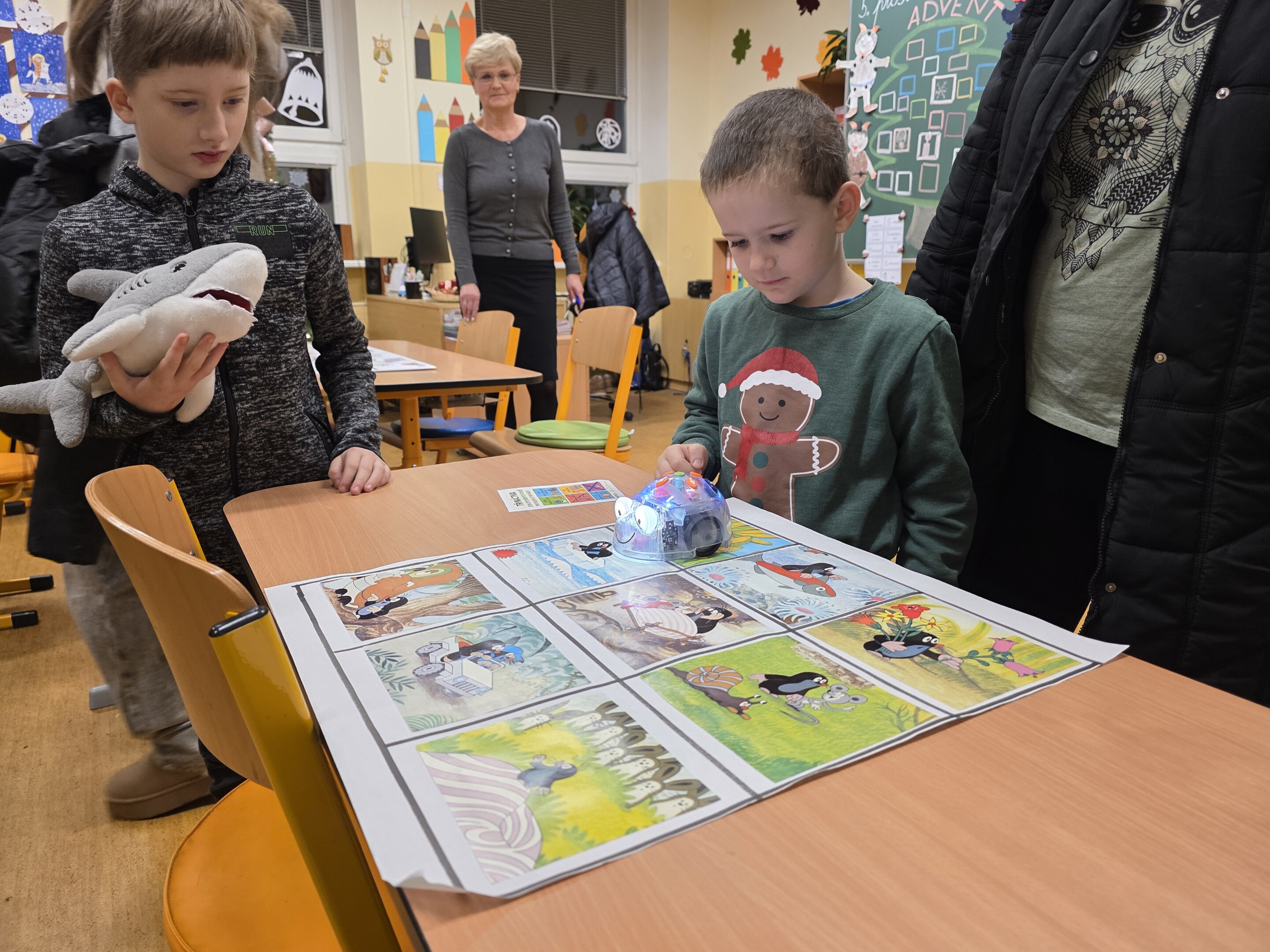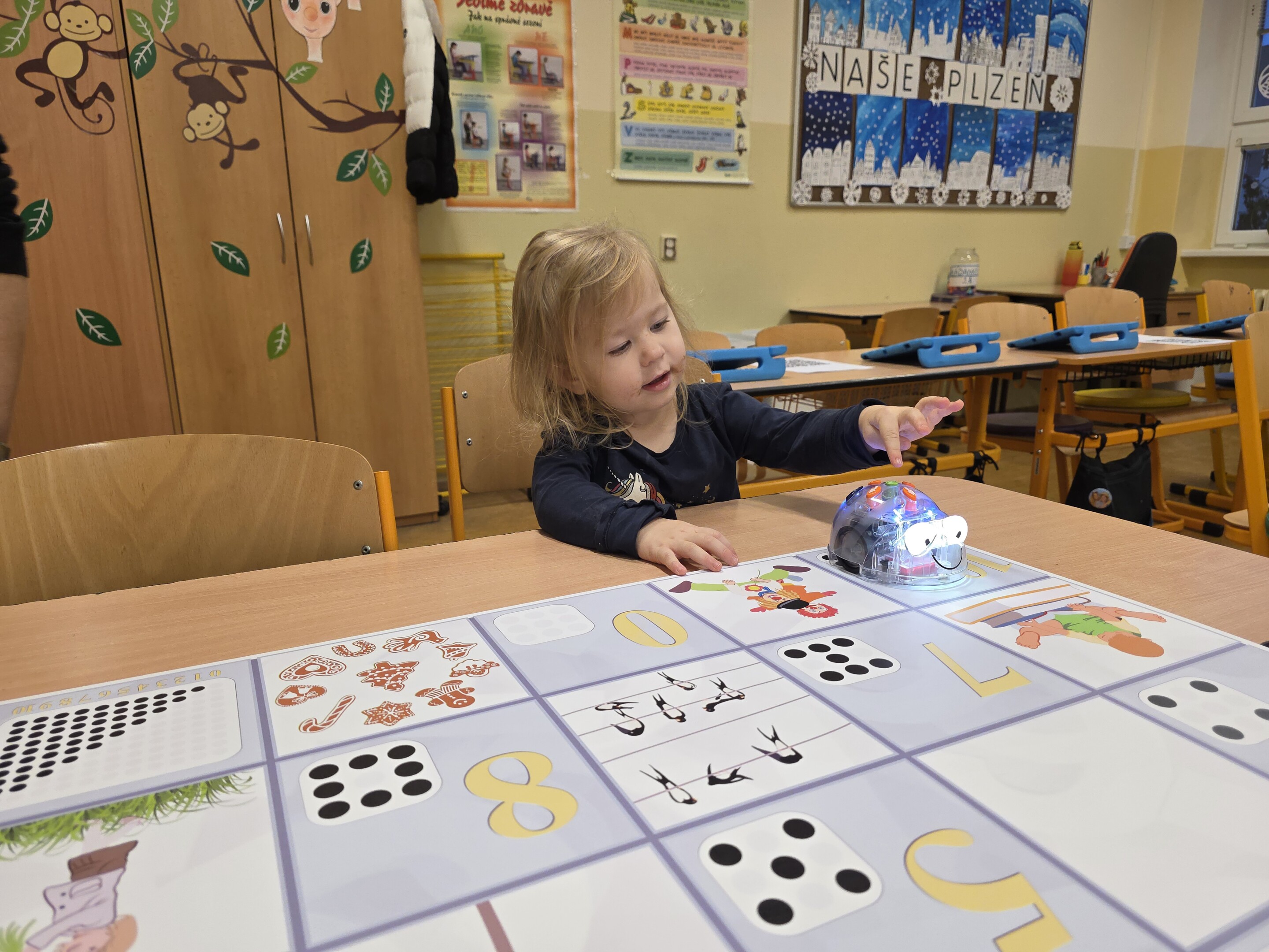 Děti si hrály s roboty a iPady, stavěly rozmanité modely ze stavebnic a za pomoci drátků poznávaly a pletly písmena. Úspěch mělo také poznávání zvířat, přiřazování geometrických tvarů a sportovní stanoviště na chodbě, kde si malí návštěvníci mohli vyzkoušet běh mezi kužely.